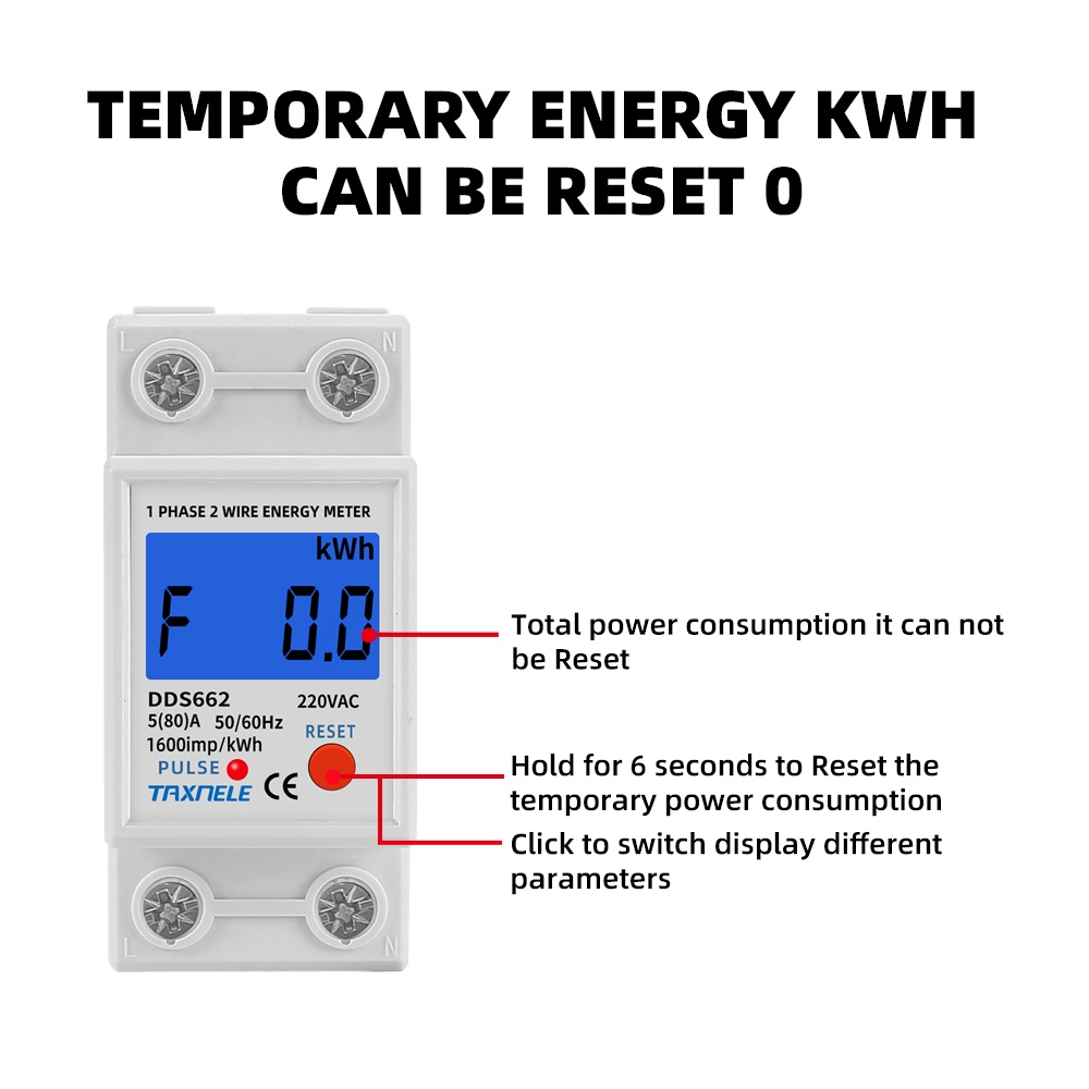 AC 230V 120V Single Phase Two Wire LCD Digital Display Wattmeter Reset Zero Energy Electric Meter kWh Voltage Current Din Rail