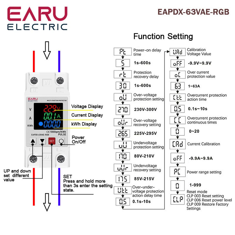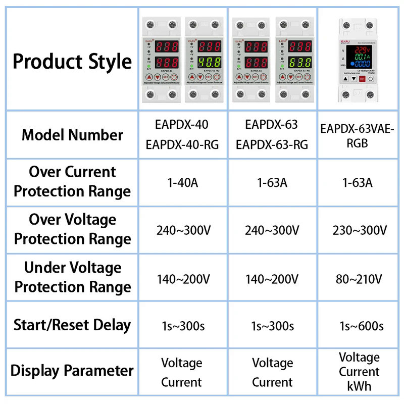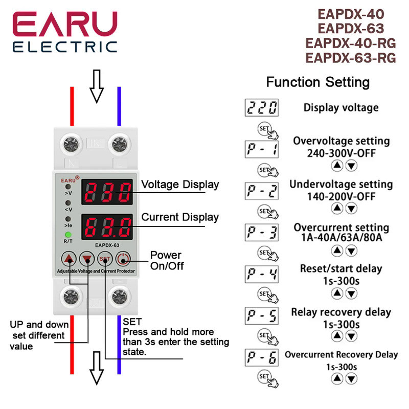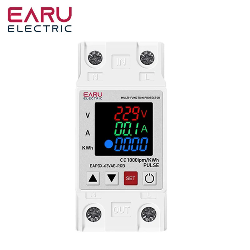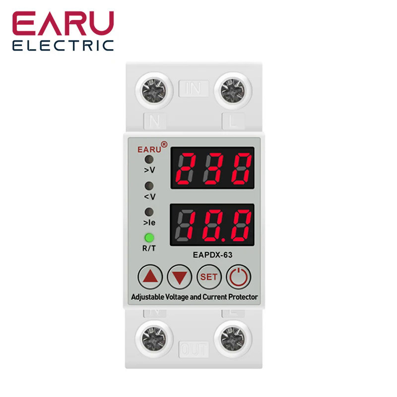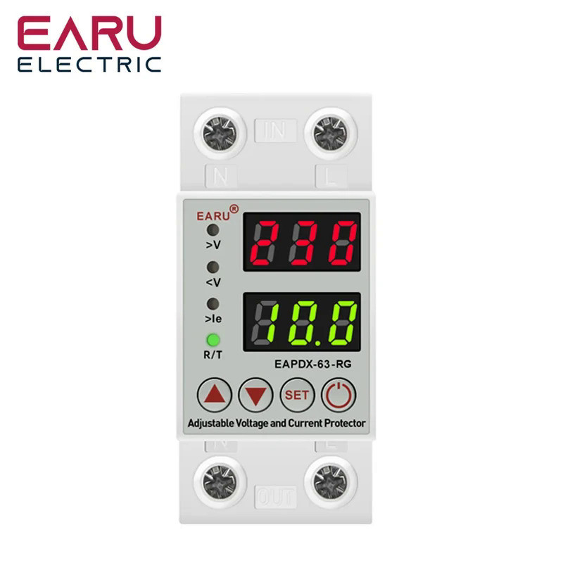AC 40A 63A 230V Din Rail Adjustable Over Voltage Under Voltage Protective Device Protector Relay Over Current Protection Limit