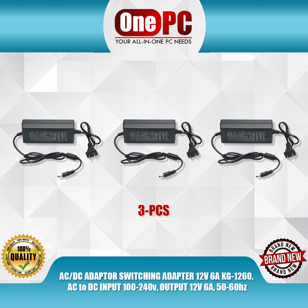 AC/DC ADAPTOR SWITCHING ADAPTER 12V 6A KG-1260, AC to DC INPUT 100-240v, OUTPUT 12V 6A, 50-60hz