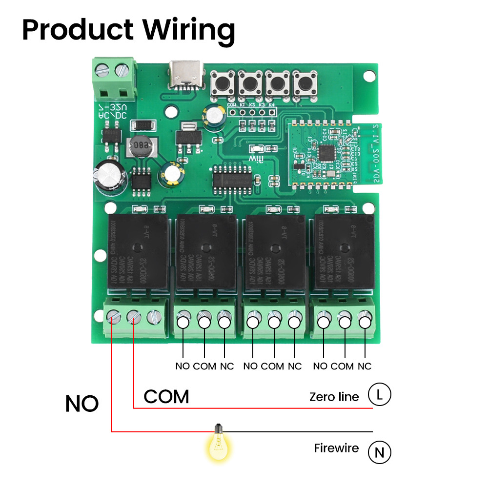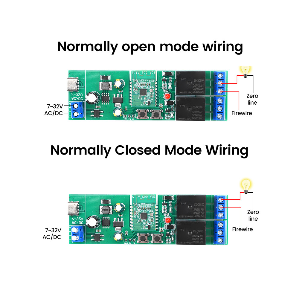 DC/AC7-32V Type-C 5V 2/3/4 Way Ewelink APP Bluetooth WIFI Relay Switch Module Type-C Interface