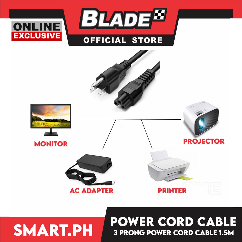 AC Power Cord Cable 3-prong 1.5 Meters