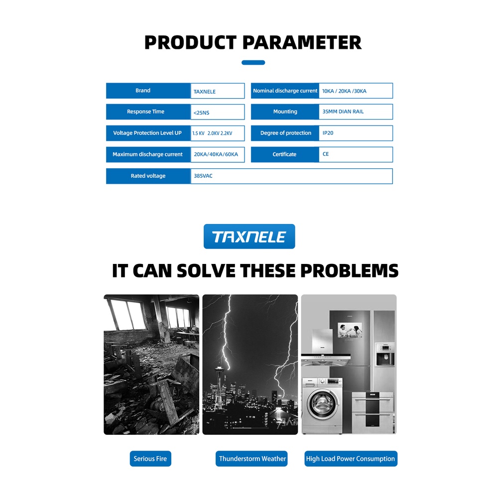 AC SPD Surge Protector Low Voltage 3P Distribution Household Lightning Protection Device Arrester Module LBO 20KA 40KA 60KA
