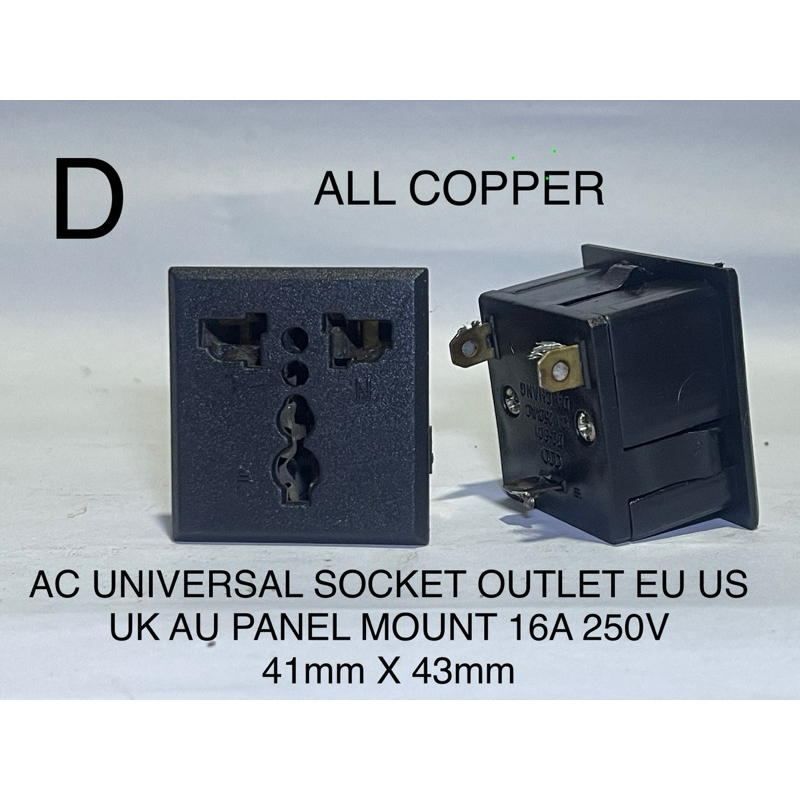 AC power socket pin socket connector EU US EK AU UNIVERSAL nema 16A 250v female chassis ( USED )