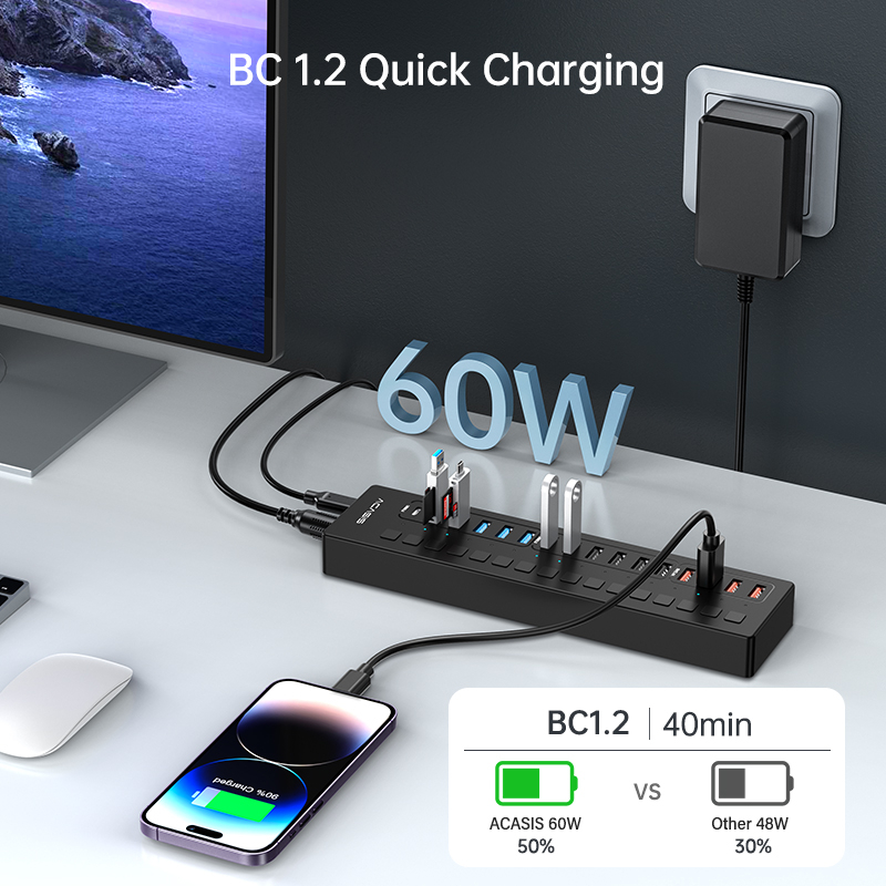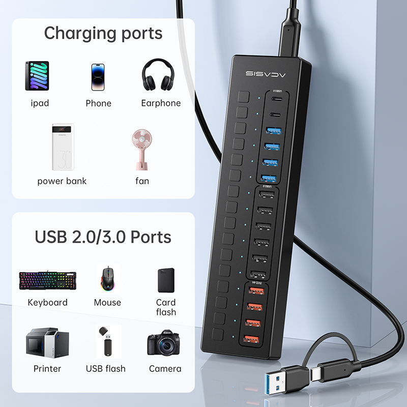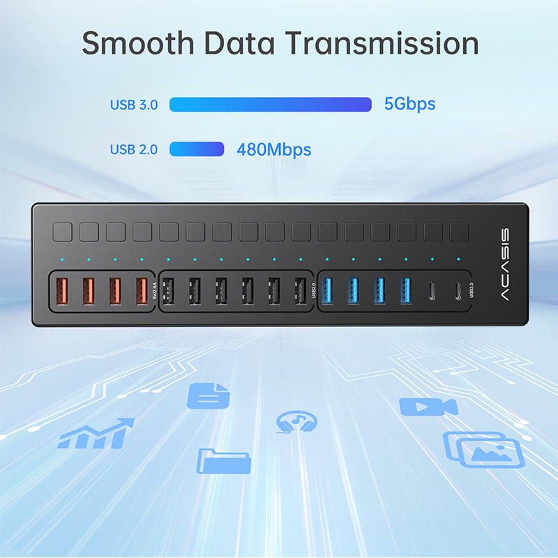 ACASIS 11/16 Ports Hub Smart Fast Charging Type-C USB 3.0/2.0 Hub High Speed USB Splitter Convert Adapte 11/16 Ports Multiple Expander For Keyboard Mouse For PC20