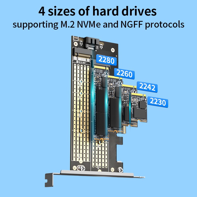 ACASIS NVMe PCIE Adapter M.2 To PCIE 3.0 X4/8/16 Expansion Card Dual Channels Support Sata Protocols 32Gbps M&B Key SSD Computer Cards