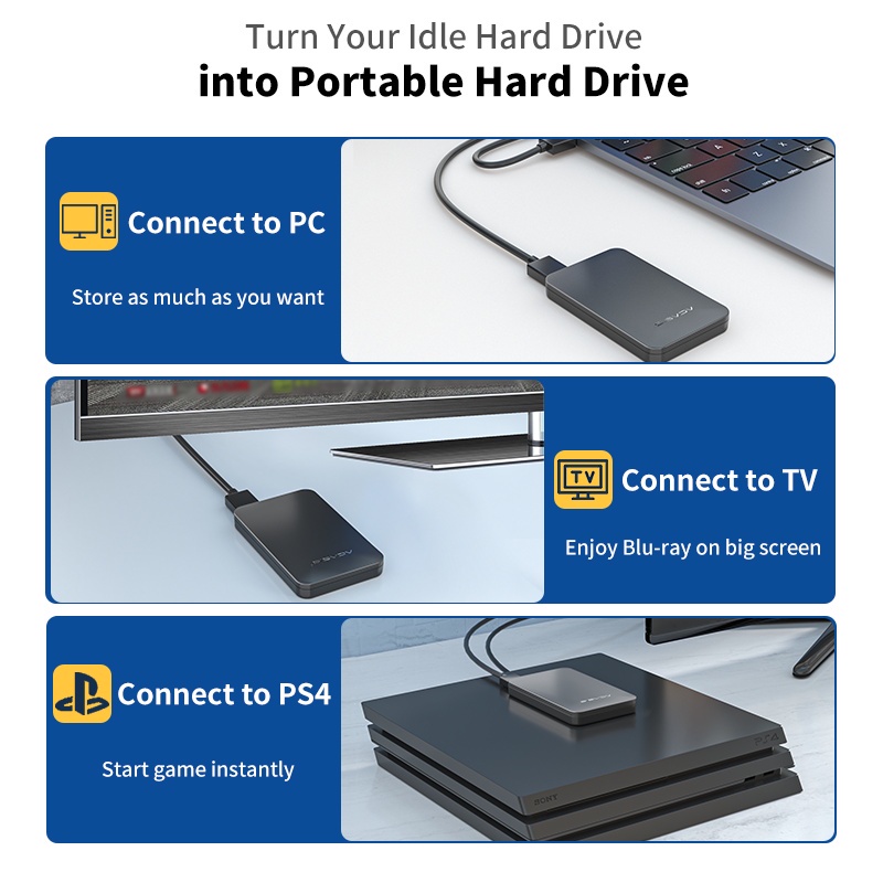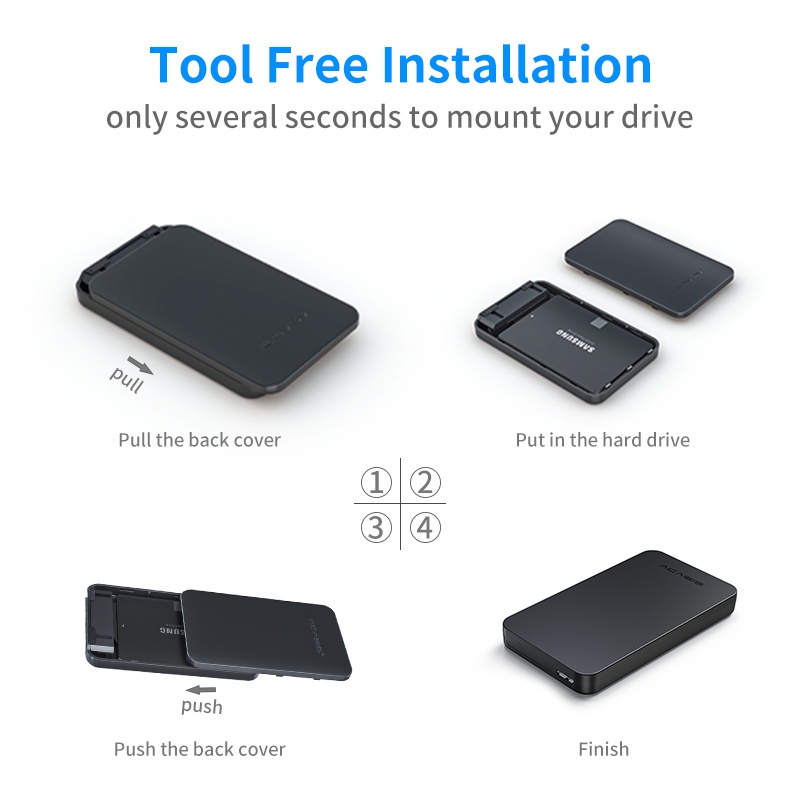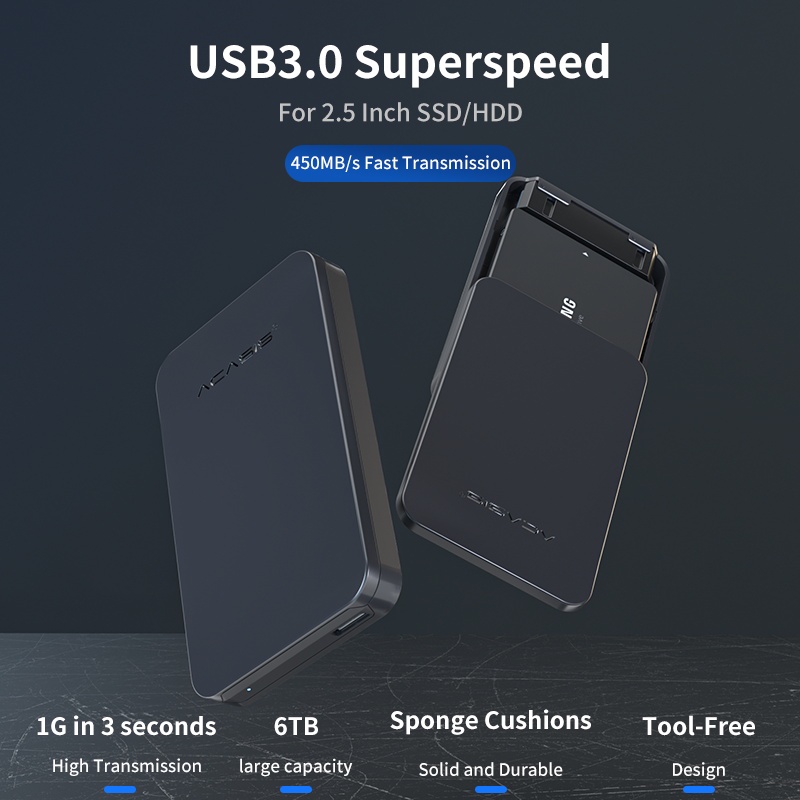 ACASIS USB 3.0 Toolless Full External Hard Disk Drive HDD Solid State SSD SATA Enclosure Case 2.5 Inch