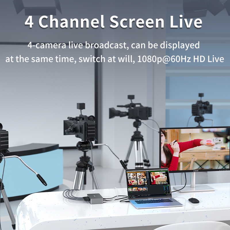 ACASIS HDMI Channel Video Capture Card Compatible With Thunderbolt 4/3 HDMI Camera Capture Card 4 HDMI Inputs 1080P60HZ Full HD 4K60 Multiview Streaming Video Conferencing OBS Zoom