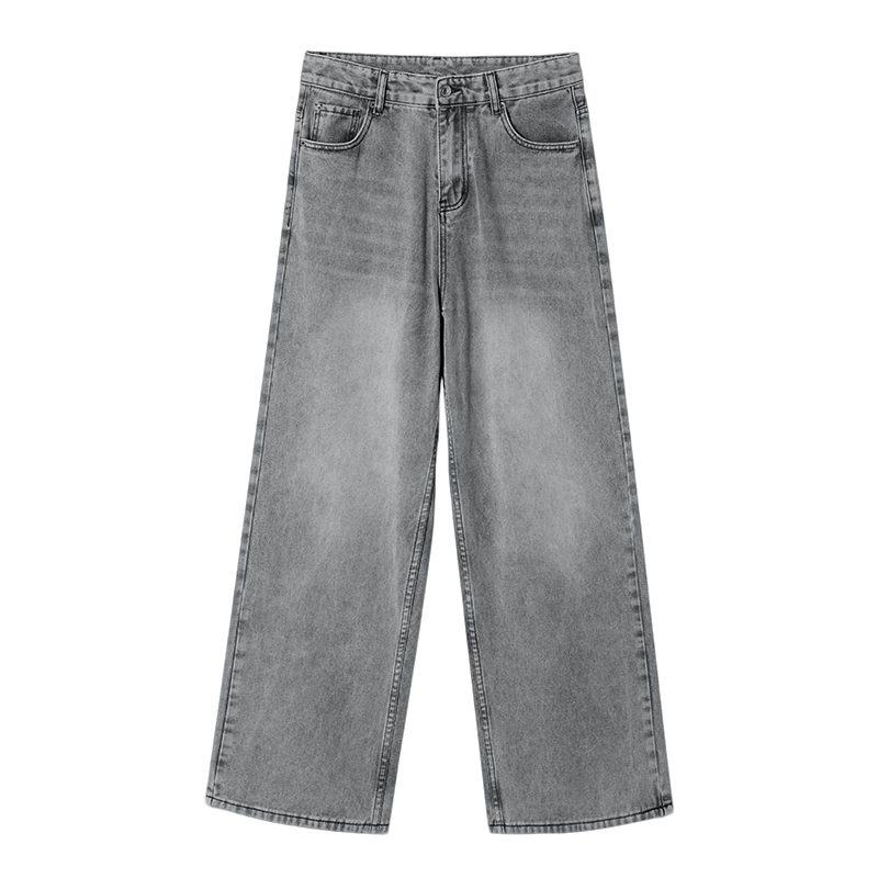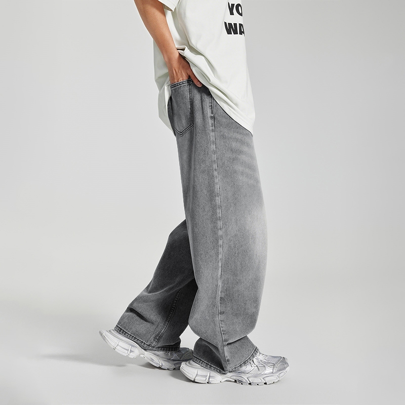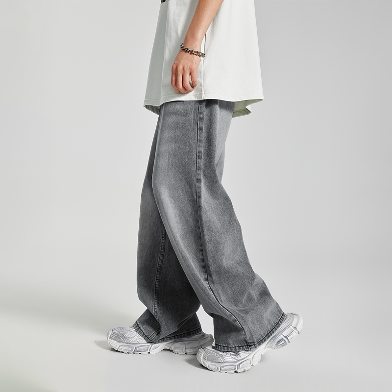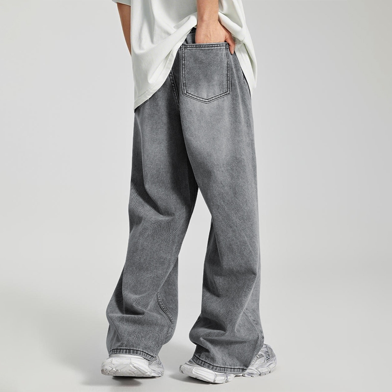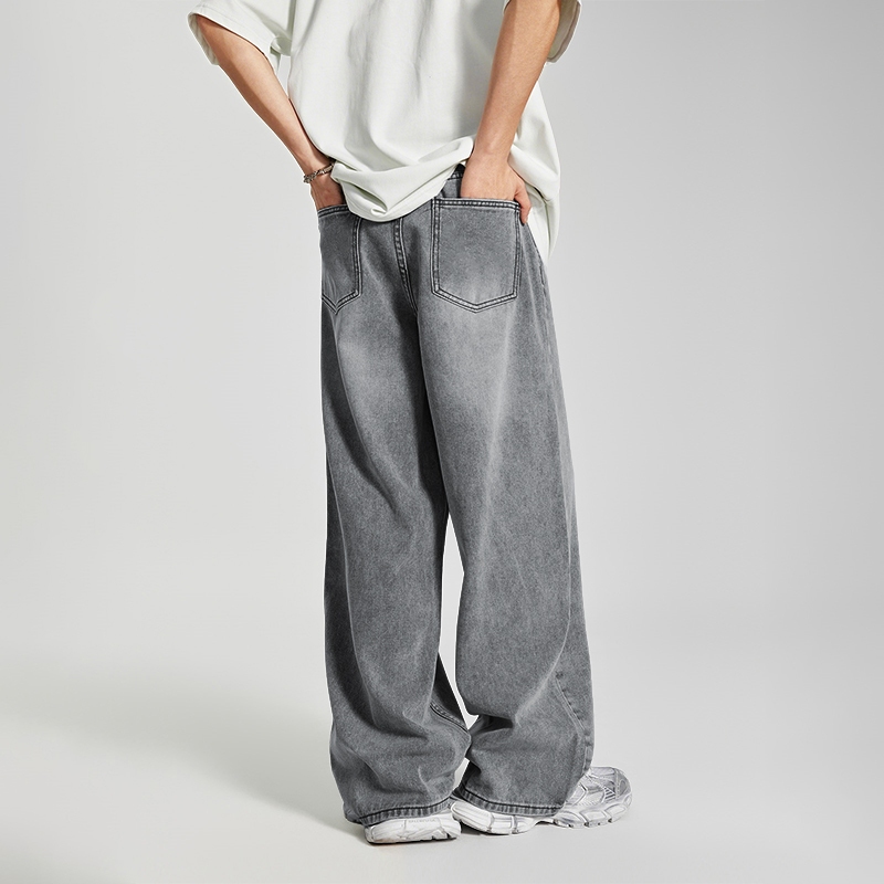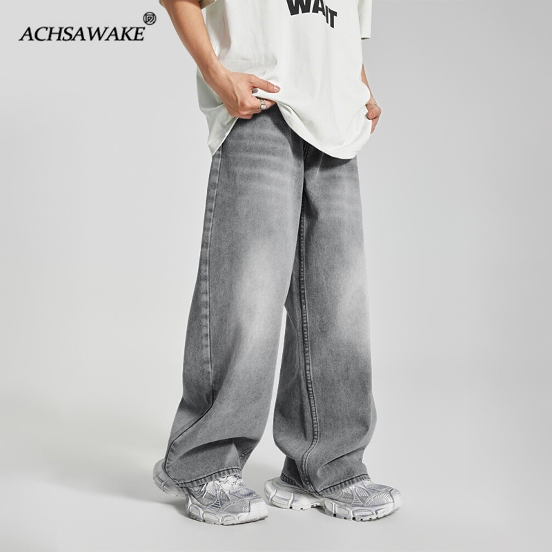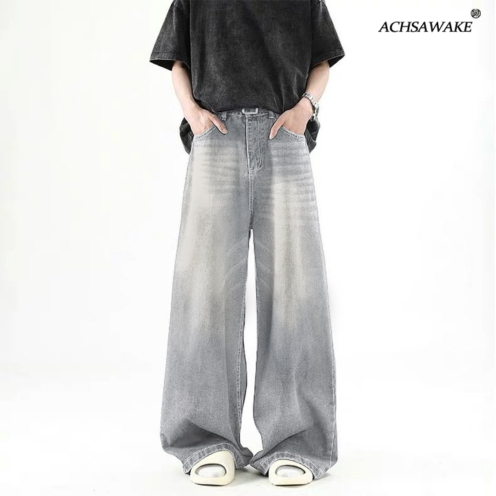 ACHSAWAKE Men's Jeans Washed Grey Trendy Brand Retro Loose Straight Casual Pants【Widened Version】