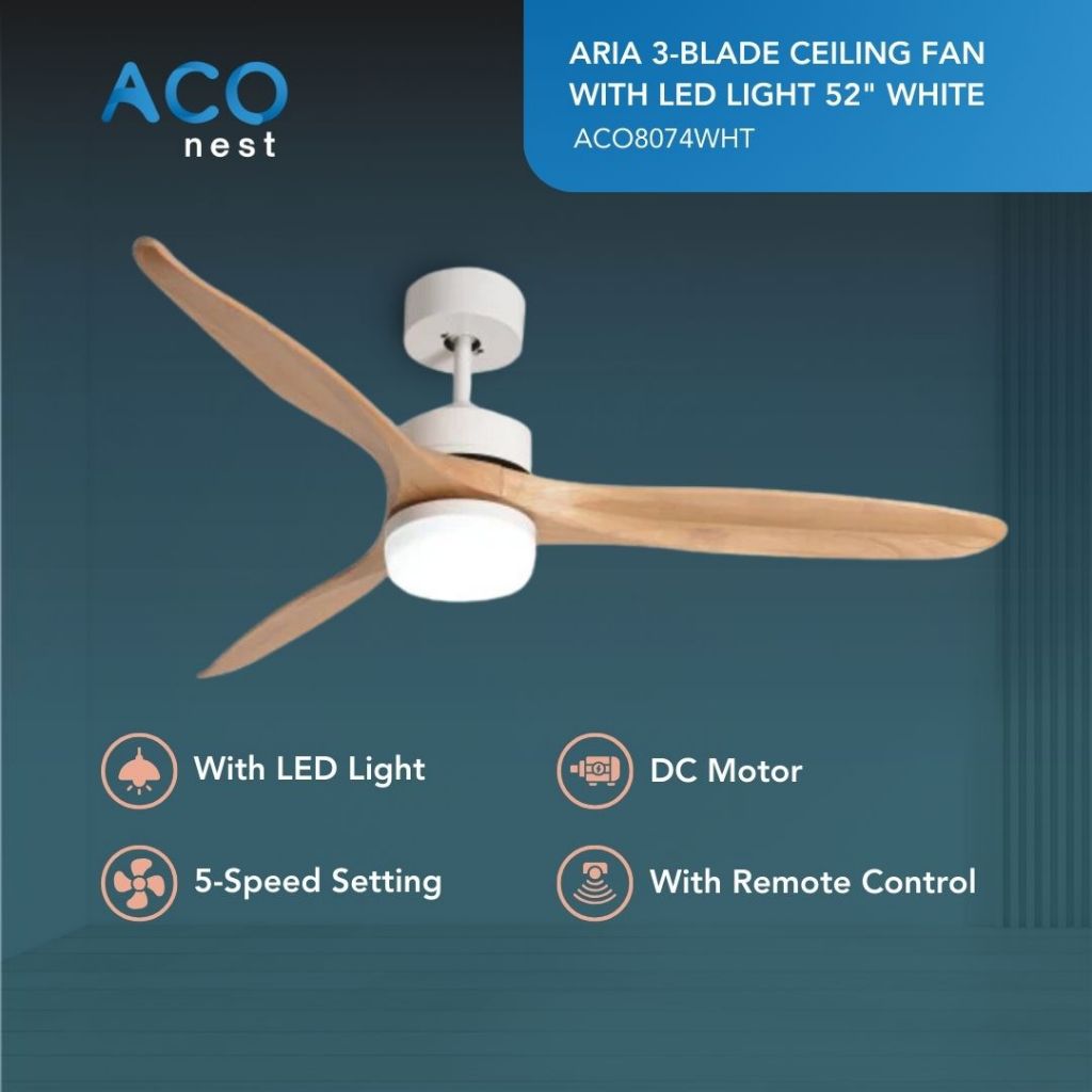 ACO Aria 52" 3-Blade Solid Wood Ceiling Fan with Tricolor LED Light and Remote Control