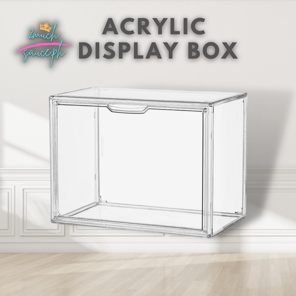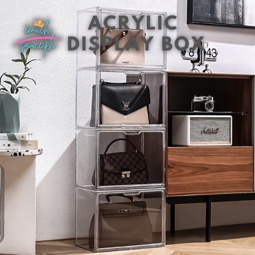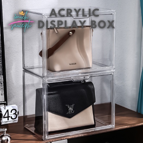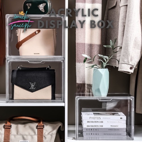 ACRYLIC LUXARY BAG CASE & DISPLAY BOX SIDE DROP MAGNETIC FULLY TRANSPARENT STACKABLE STORAGE BOX