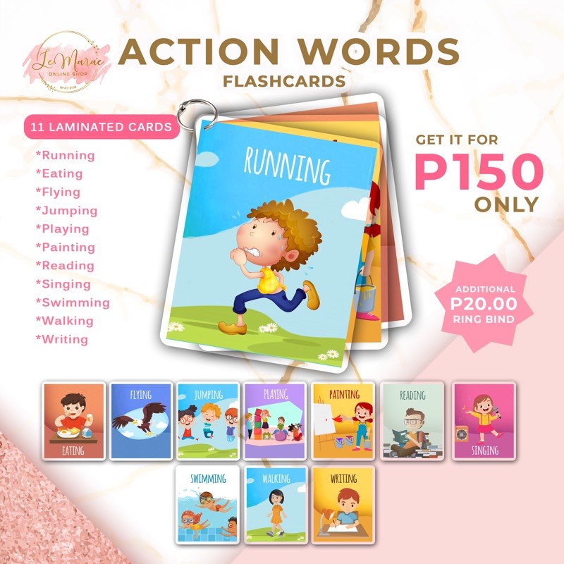 ACTION WORDS Laminated Flashcards Interactive Educational Toys for Kids Toddlers Homeschooling