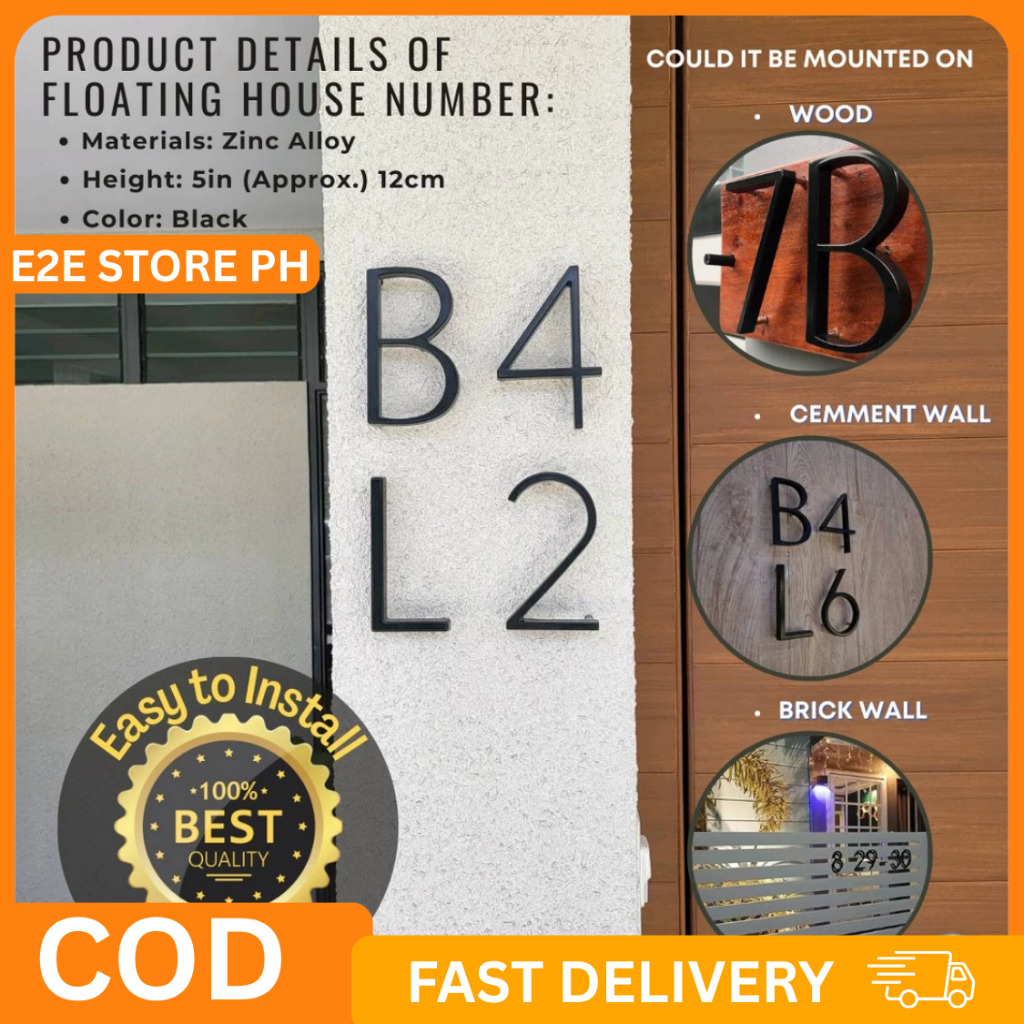 ADDRESS House/Door/Building Floating Number Letters Sign Block and Lot Solid Zinc Alloy DIY