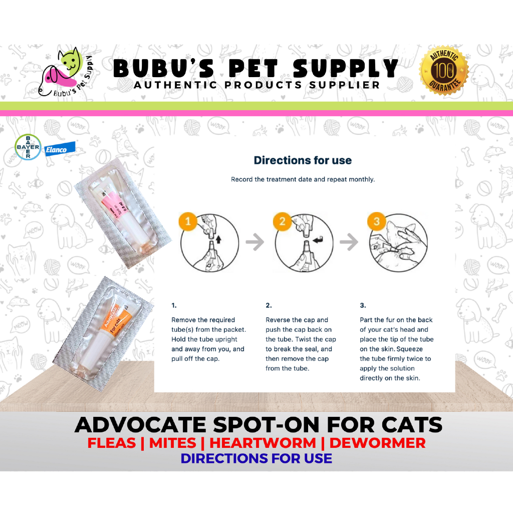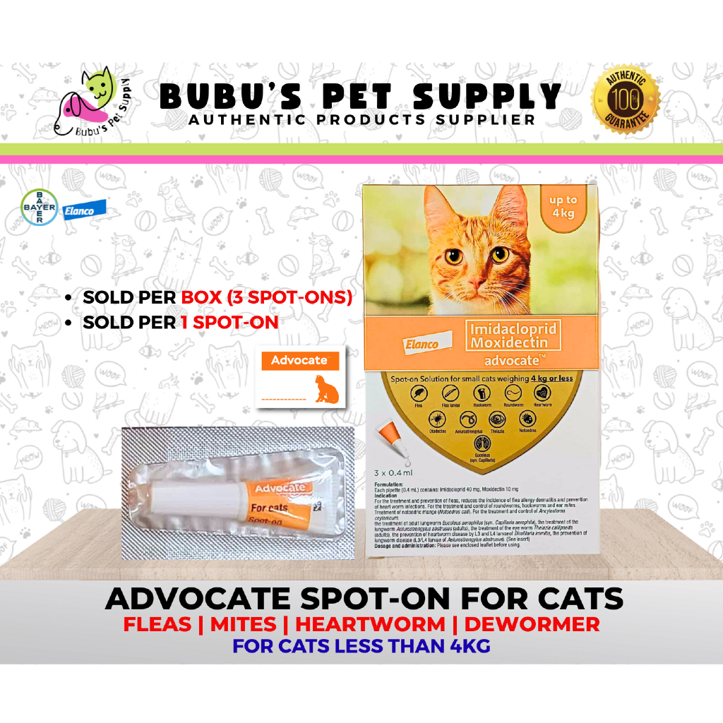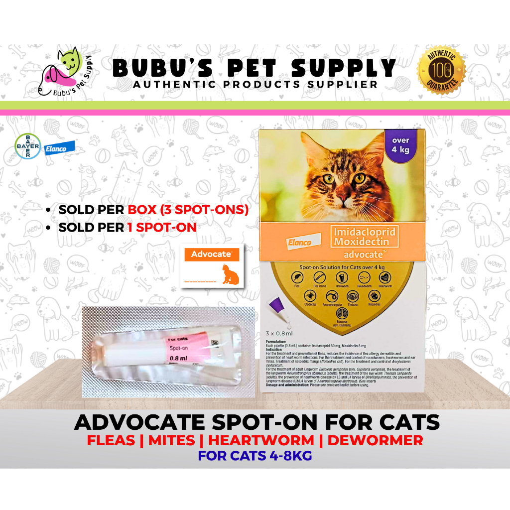 ADVOCATE SPOT ON FOR CATS Anti Flea, Ticks, Ear mites, Intestinal Worms WITH STICKER