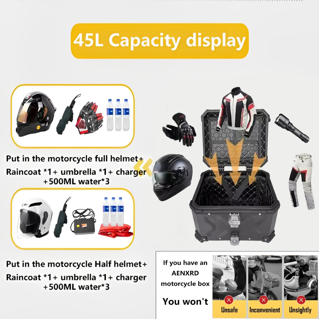 AENXRD Top Box Motorcycle Box 45L Givi Box Motorcycle With Base Plate alloy top box