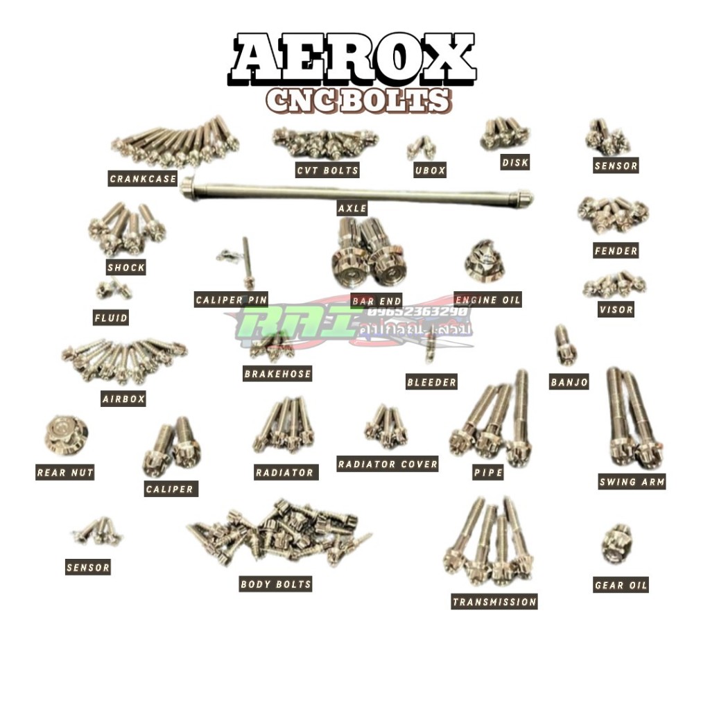 AEROX V1/V2/V3 CNC BOLTS - SOLD BY PARTS - SC SIAM THAILAND Stainless Steel White Gold Nonfading