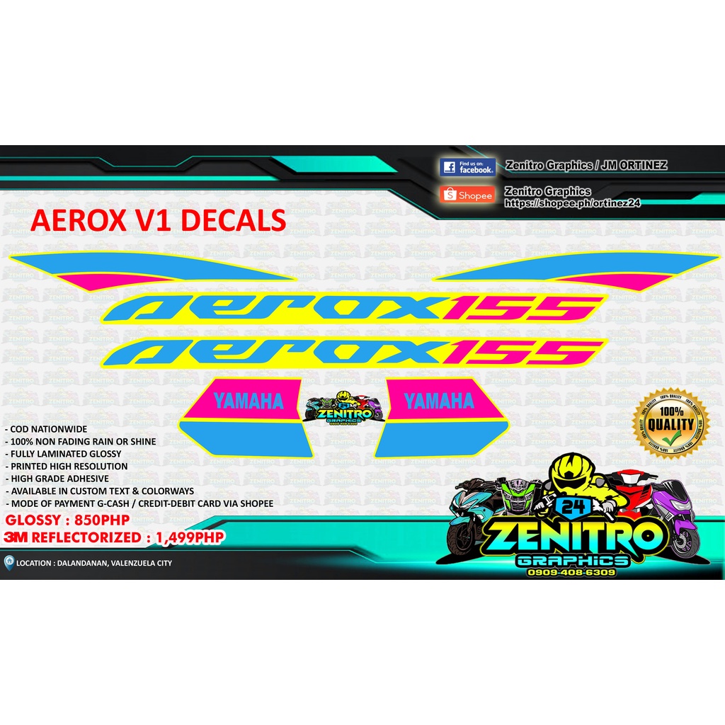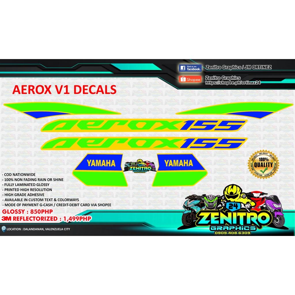 AEROX VERSION 1 DECALS (TRIPLE COLOR)