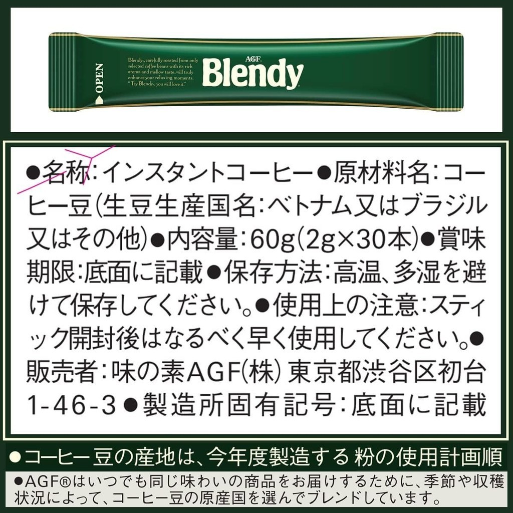 AGF Blendy Stick Black 30 Sticks [Stick Coffee] [Water Soluble Coffee] [Instant Coffee]Directly from Japan