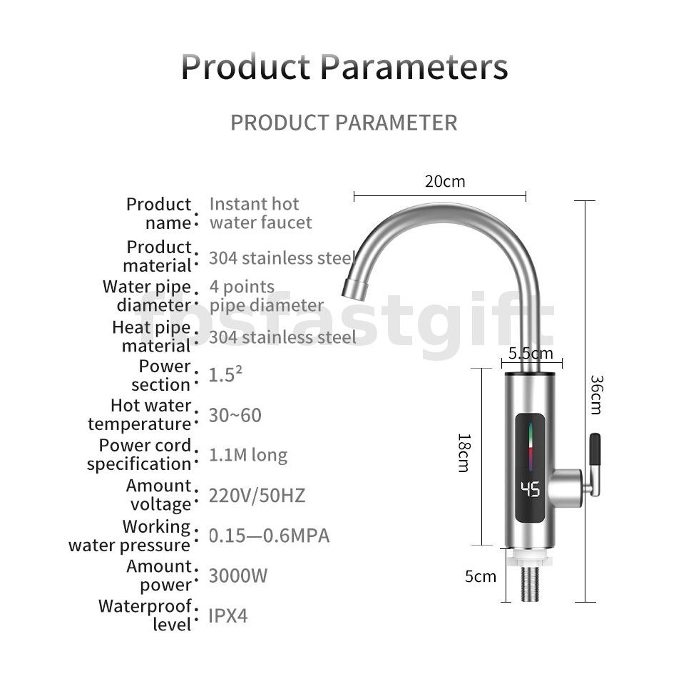 AGSIVO 3000W 220V Instant Electric Water Heater Faucet Tap Tankless LED Digital Display EU Plug for Kitchen Bathroom