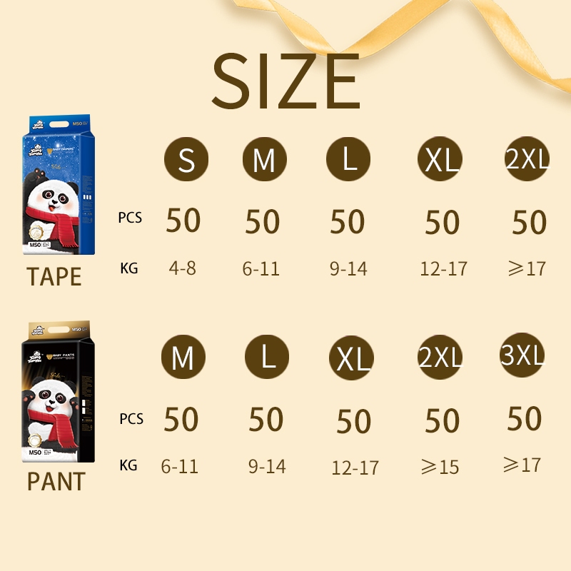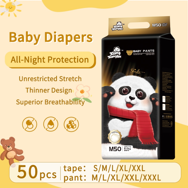 AIKERRSU Ultra-Soft Panda Diapers Pull-up Pants Baby Diaper Pants 50 Pcs/Pack Bundle Pack
