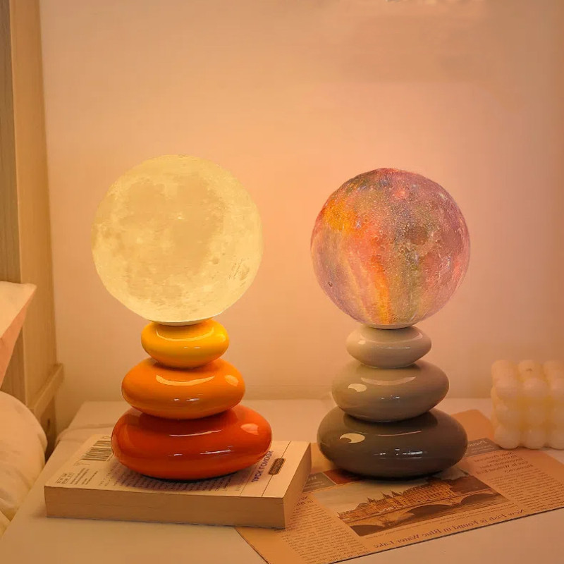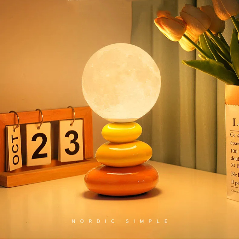 AIMI Ceramic Table Lamp Moon Lamp Led Living Room Study Night Light Bedroom Bedside Lamp