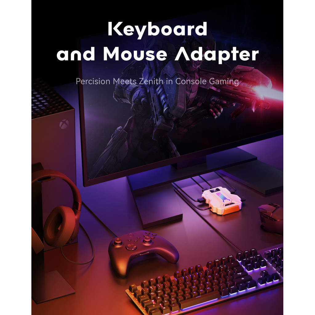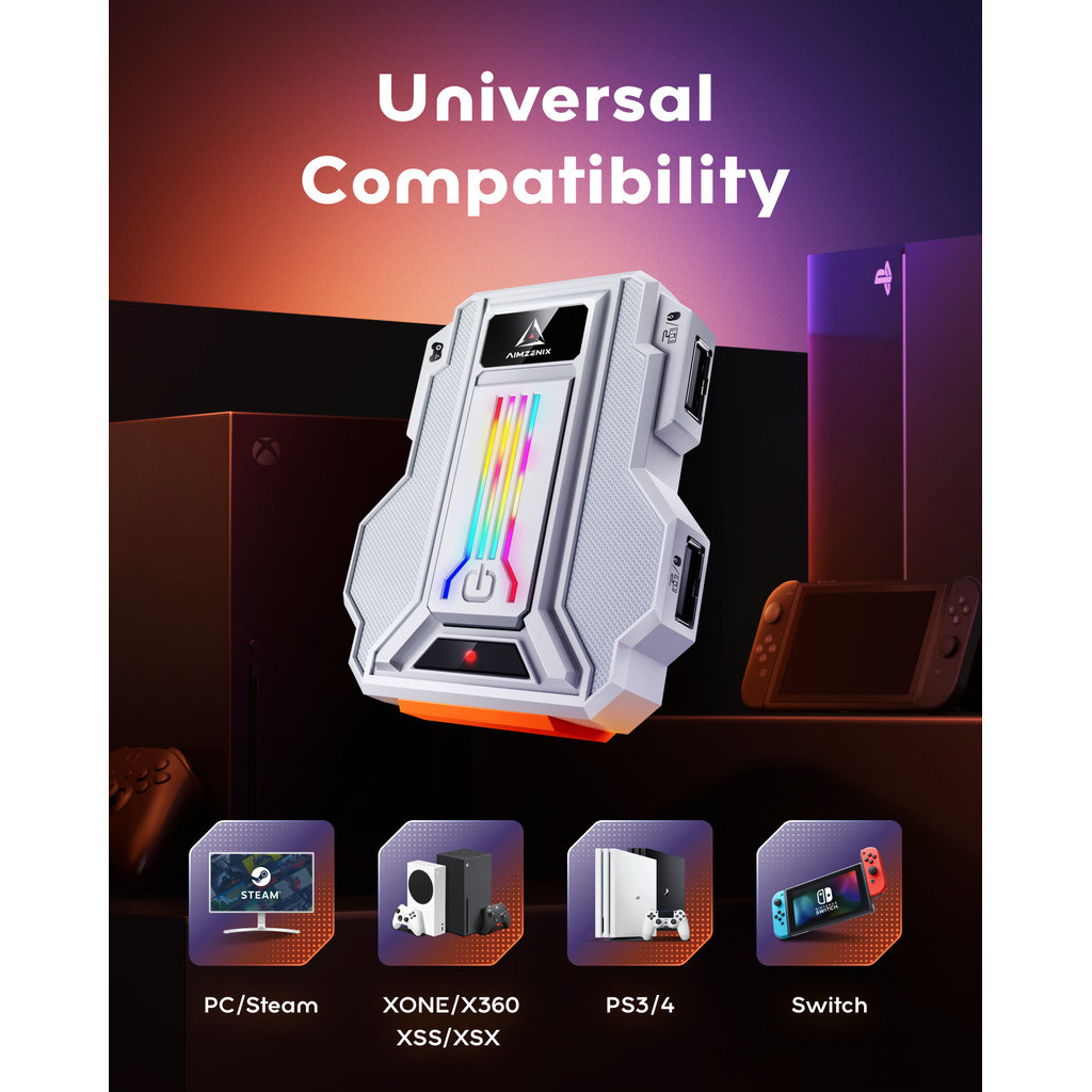 AIMZENIX STRIKER PRO K&M Game Adapter for PS4, PS3, ONE,X360, XSS, XSX, N-Switch, Supports 3.5mm Headphones, App