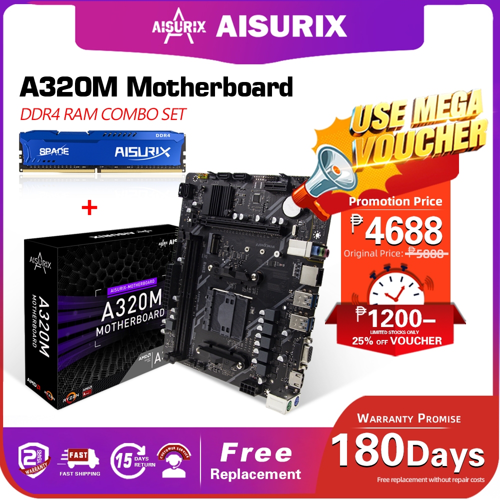 AISURIX A320M Motherboard ATX Support DDR4 Memory Socket AM4 Mobo SATA 3.0 6Gb/s 64GB USB Nvme A320