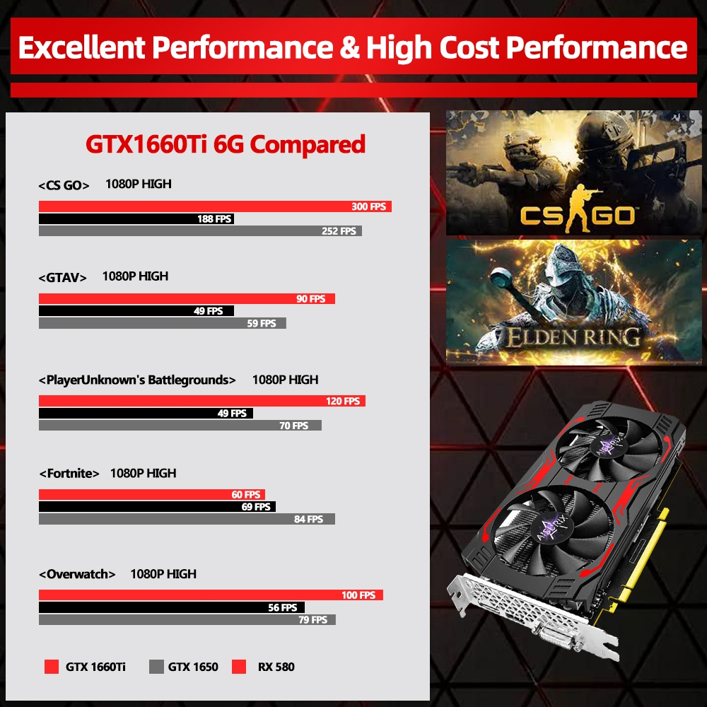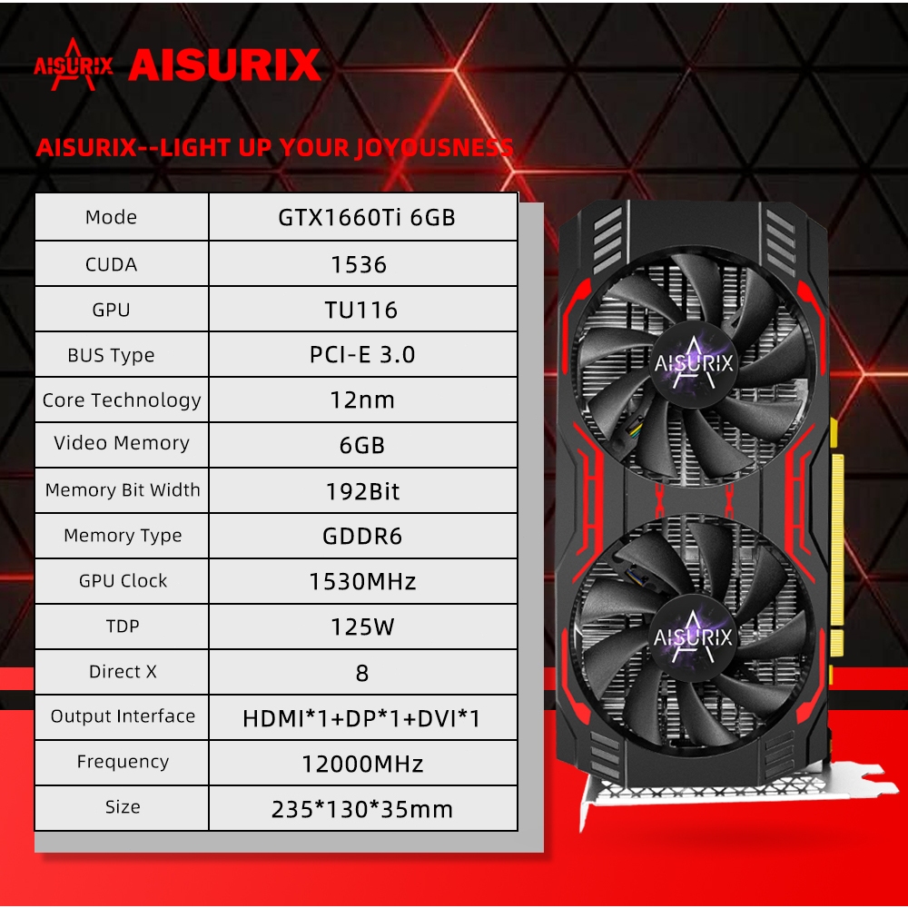 AISURIX Graphics card GTX1660ti 6G GDDR6 Video card 192bit GPU For PC Gaming