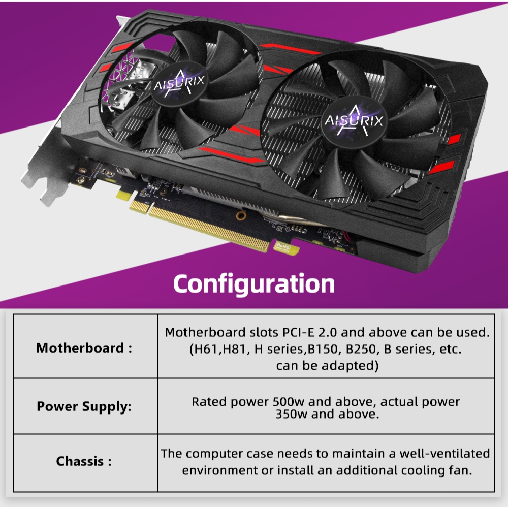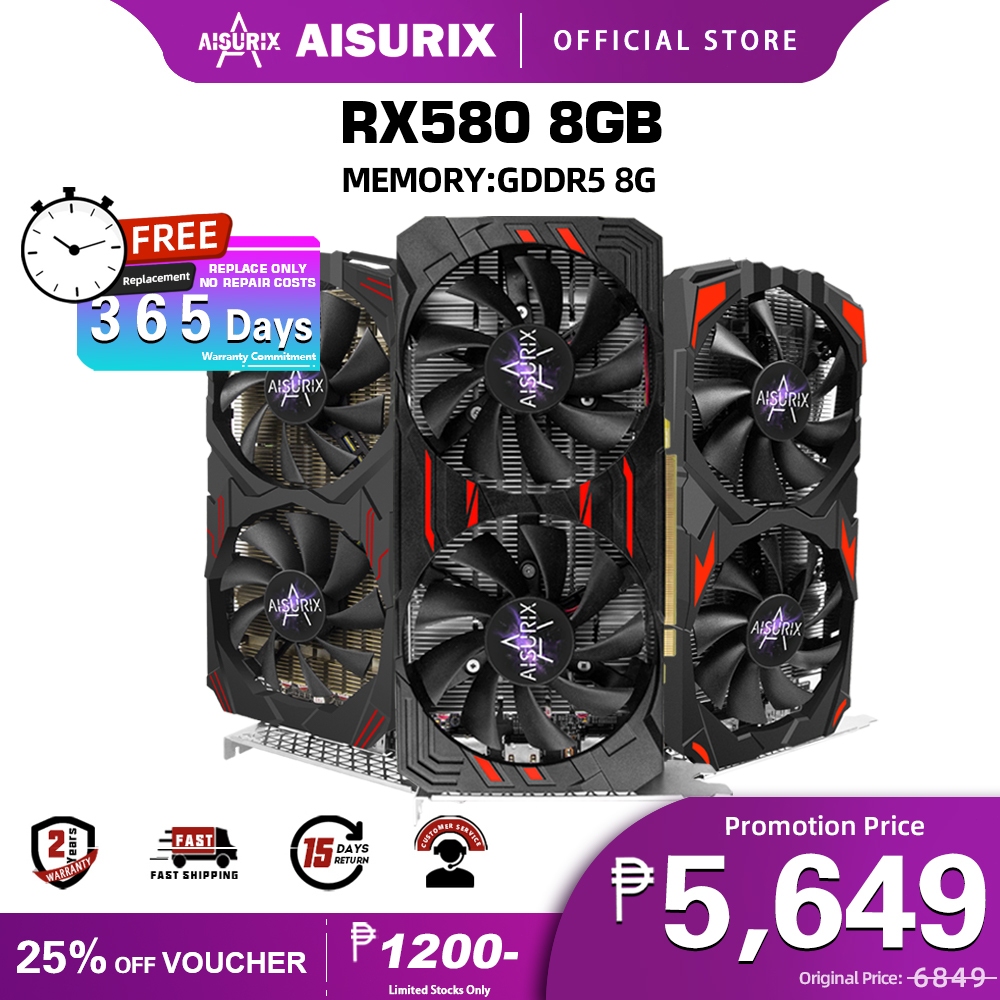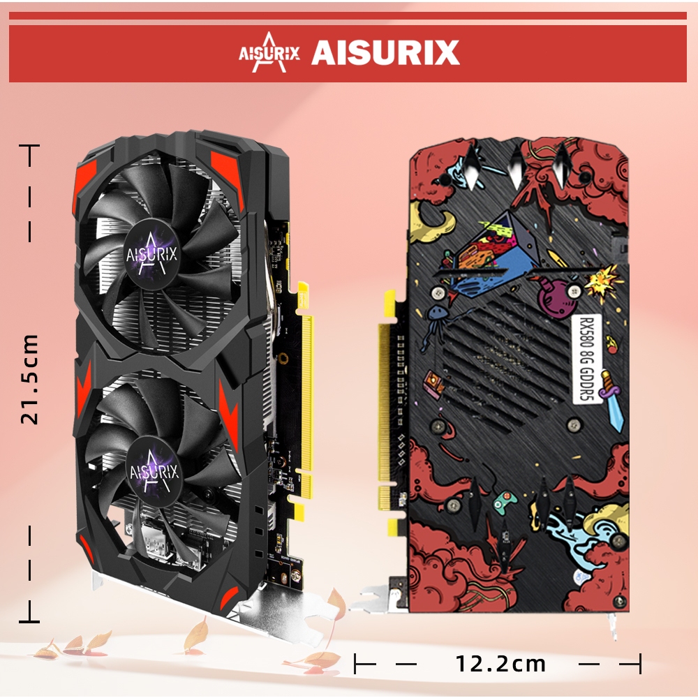 AISURIX RX 580 8G Graphics Card PC GPU GDDR5 256Bit Computer Video Card AMD for Gaming Work Design