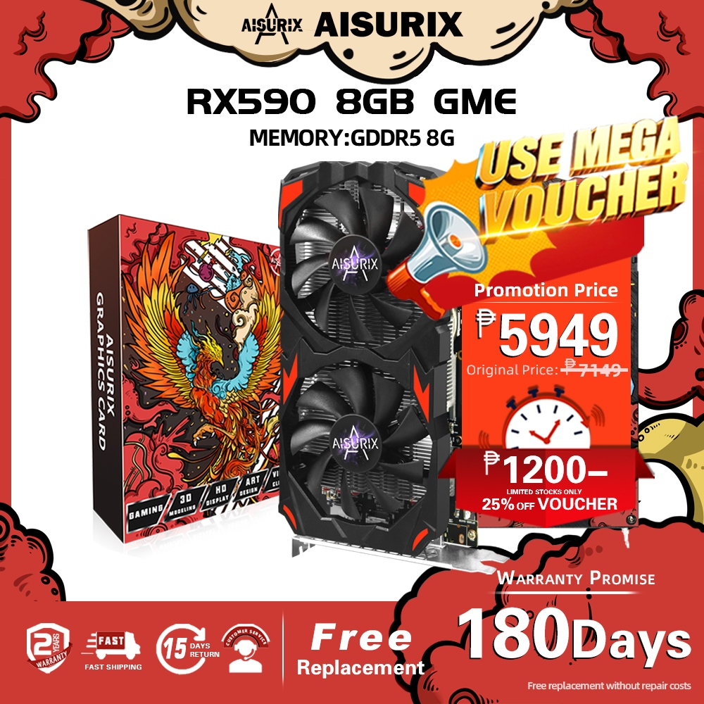 AISURIX RX590 8G NEW Graphics Card GDDR5 256Bit 2304sp AMD PC GPU Video Card For Gaming Work