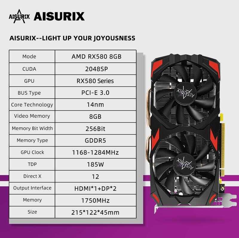 AISURIX RX 580 8Gb Graphics Card Computer GPU Radeon AMD Video Card For Gaming Work Office E15