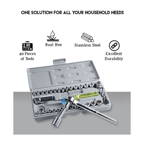 AIWA 40pcs Socket Wrench Set Stainless Steel Tools | Tool Kit for Car, Home, Motorcycle, DIY Use
