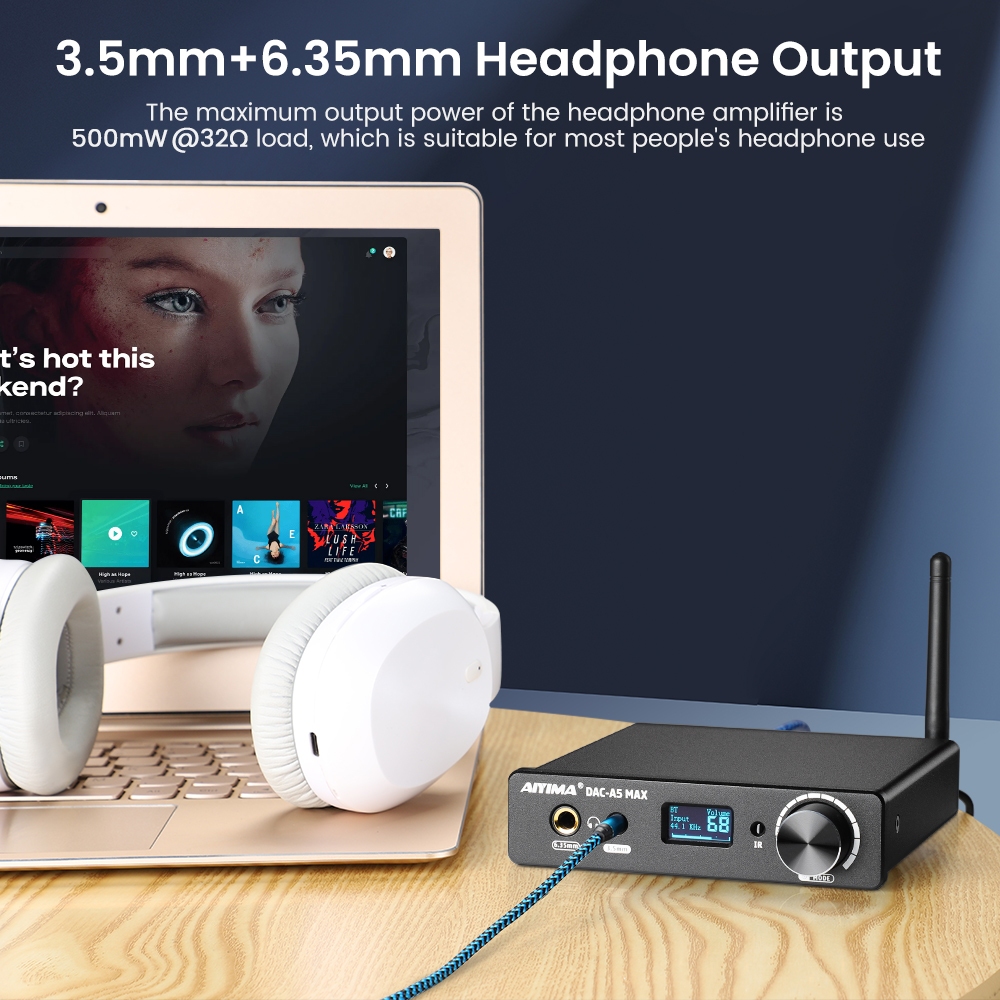 AIYIMA Audio DAC-A5 MAX Headphone Amplifier Bluetooth 5.1 ES9038K2M Decoder APTX LDAC Support DSD256 PCM384 With Remote Control