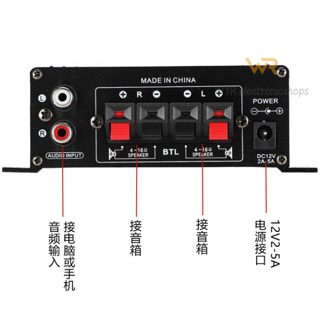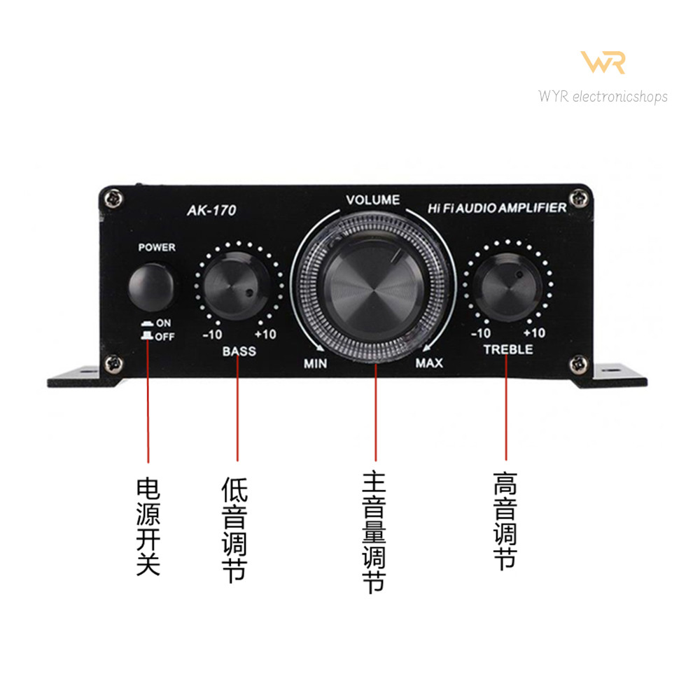 AK-170 Mini High-Fidelity Power Amplifier Computer Audio Dedicated 2.0 Channel Pure Power Amplifier 12V Power Supply Household Small Audio System