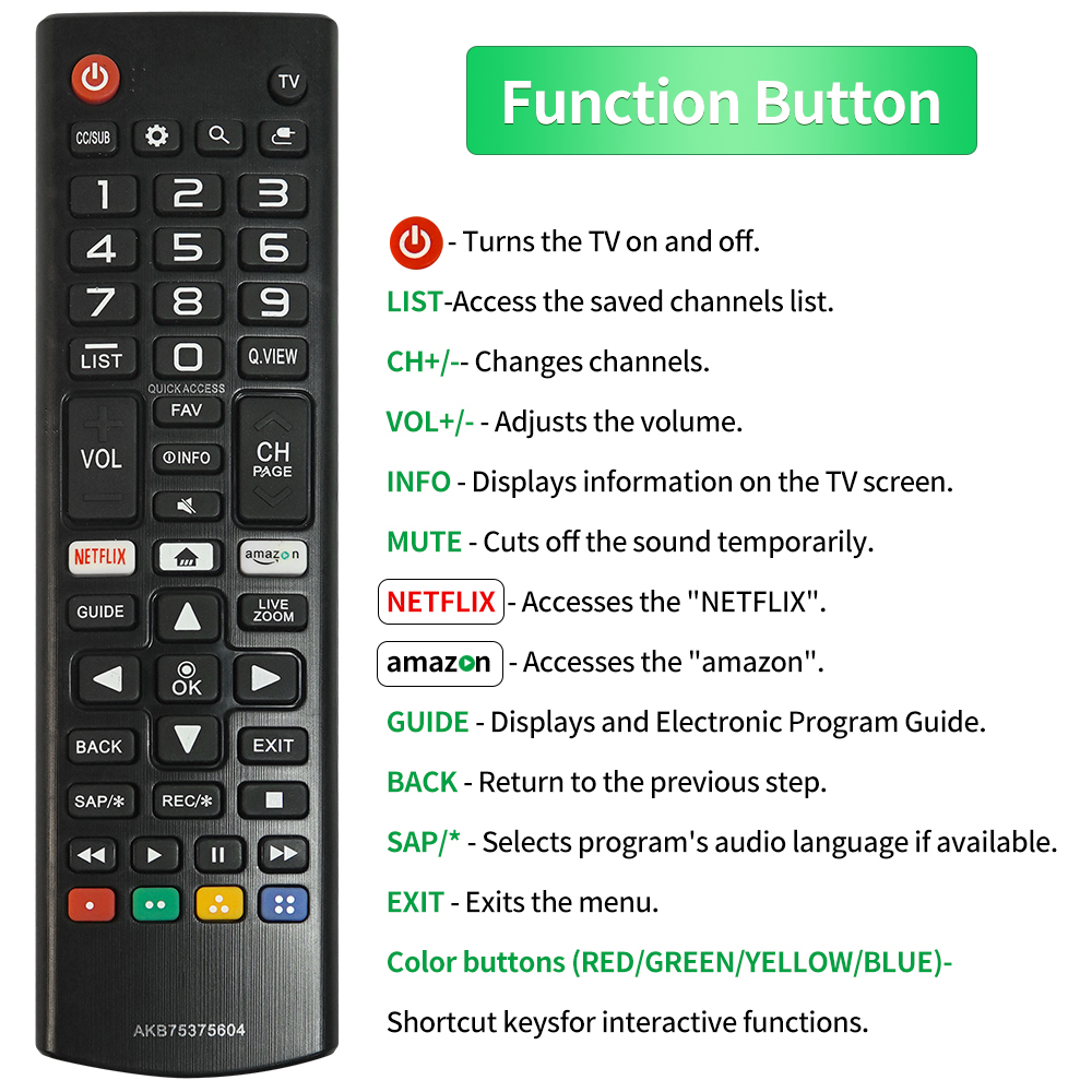 AKB75375604 Remote for LG Smart TV - 4K 3D LED LCD HDTV