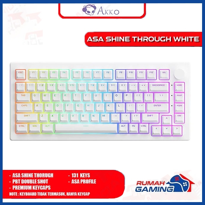 AKKO - ASA - Shine - Through Keycap - ASA - PBT - 131 KEY - Keycap - Keycaps