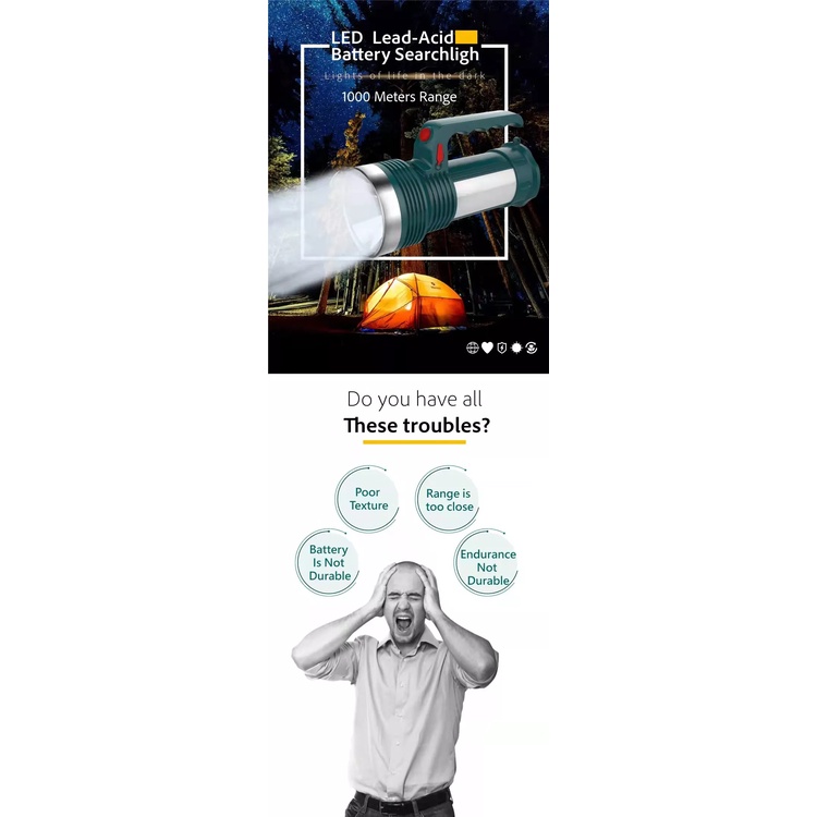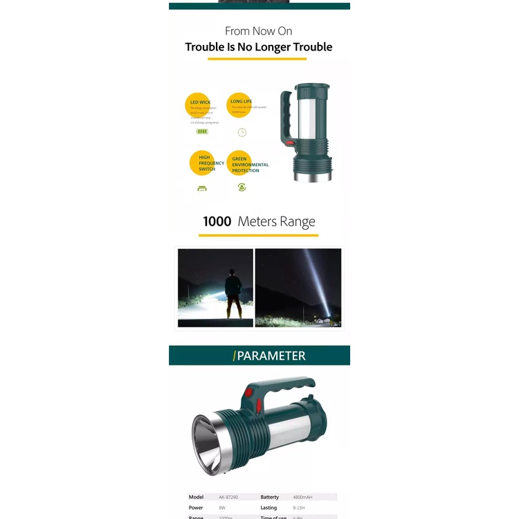 AKKO STAR Super Bright Handheld Flashlight Rechargeable 2 in 1 Side Torch (1000 Meters) 87290