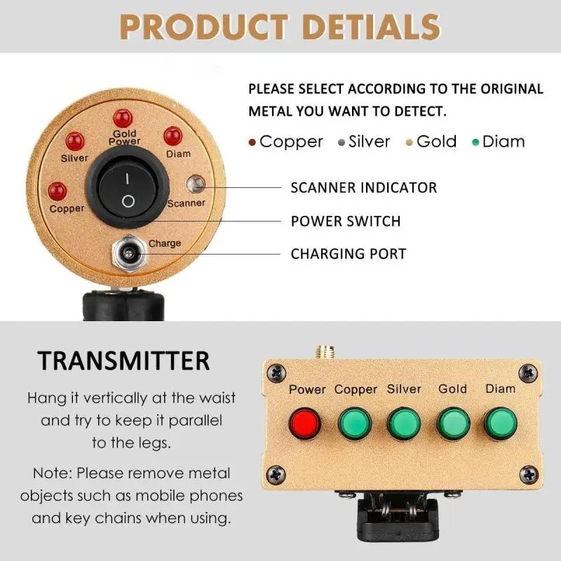 AKS Metal Detector Waterproof Handheld Gold Finder Long Range 800M Underground High Sensitivity
