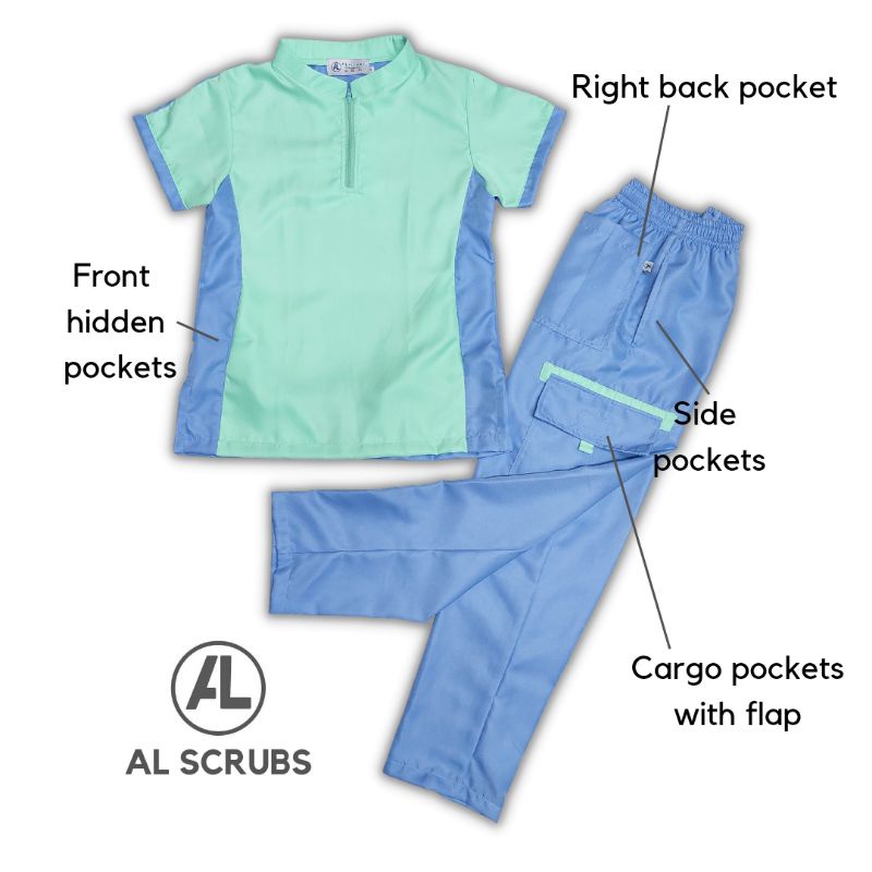 AL SCRUBS Sam Scrub Suit (Seafoam), left sleeve pockets for pen