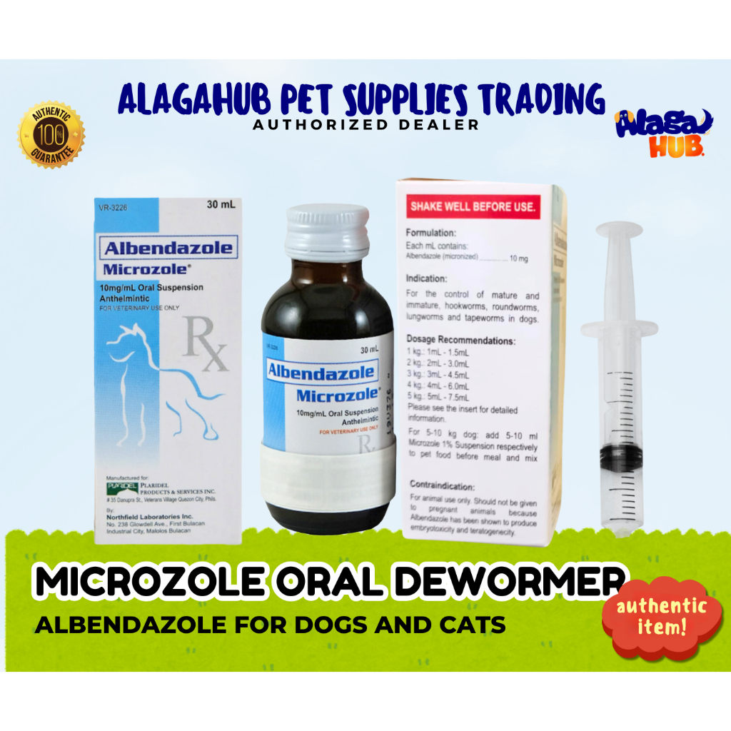ALAGA MICROZOLE LIQUID PET DEWORMER PURGA DOG CAT SYRUP 30ML WITH FREE SYRINGE STICKERS INSIDE BOX