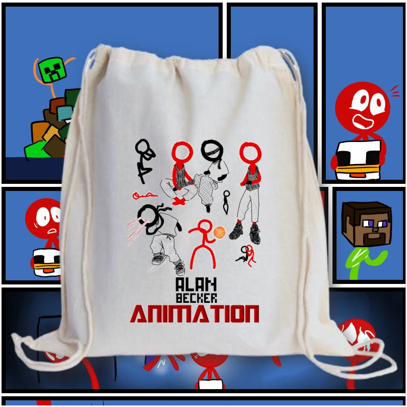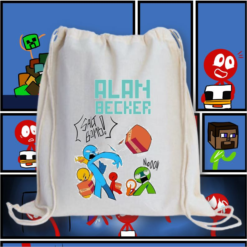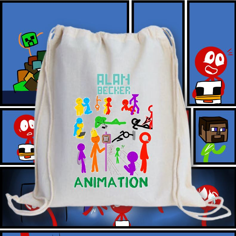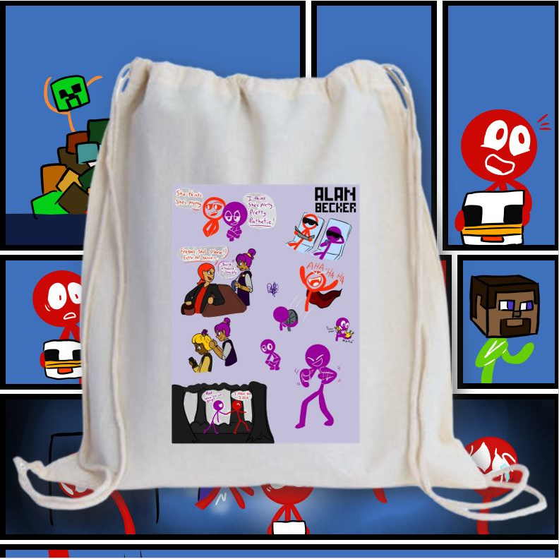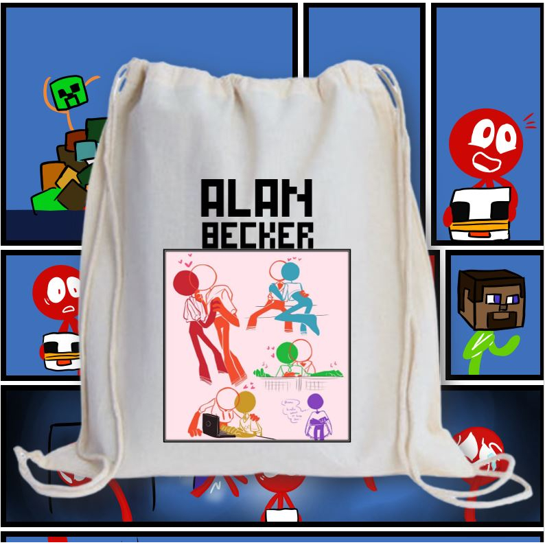 ALAN BECKER 2 DRAWSTRING BAG 2M/ GRAPHIC PRINTED CANVAS BAG / 13X15 INCHES PRINTED STRING BAG