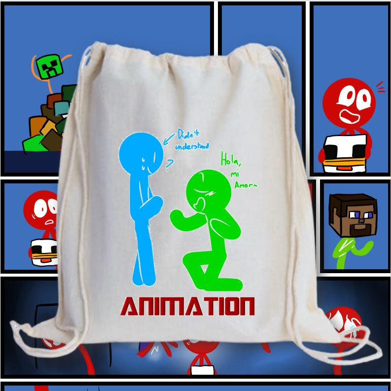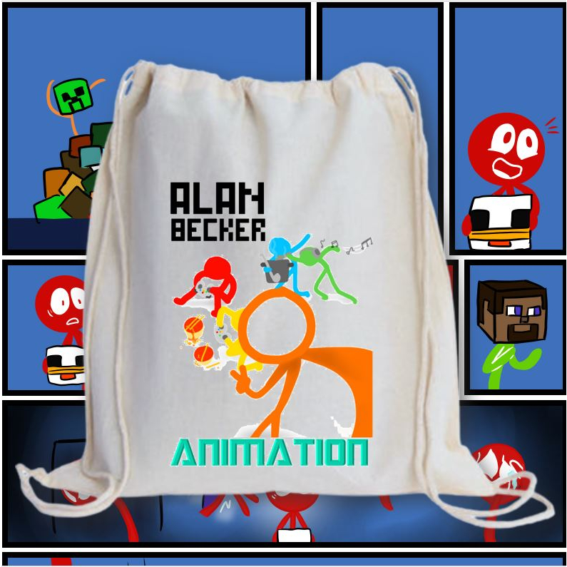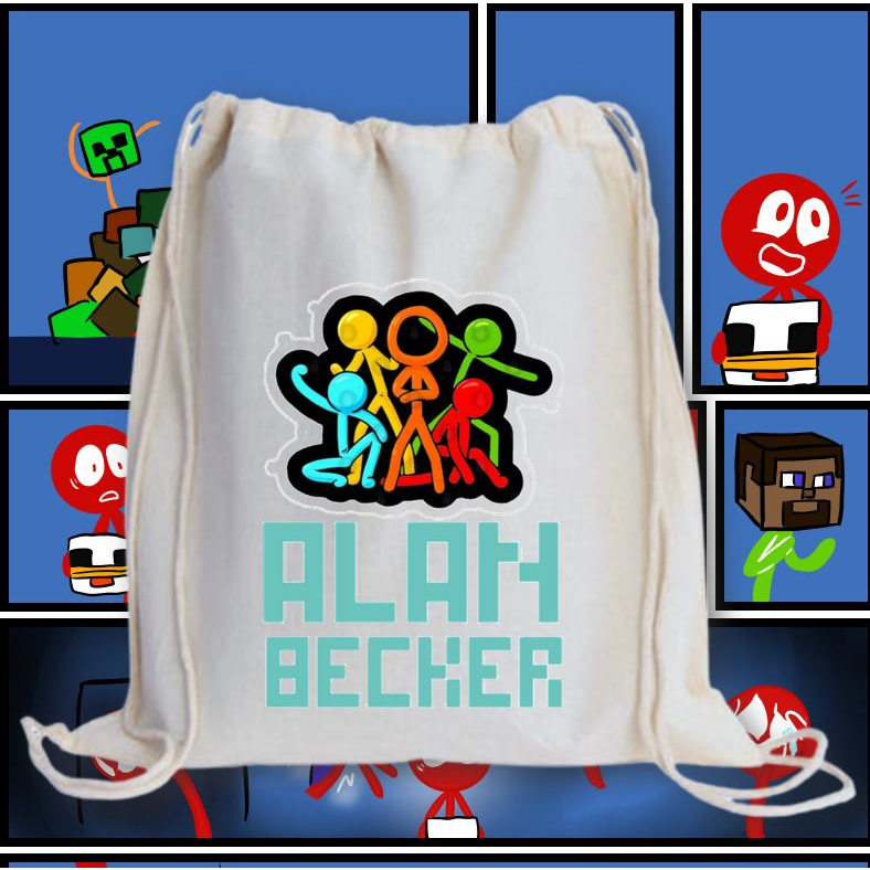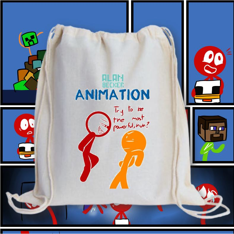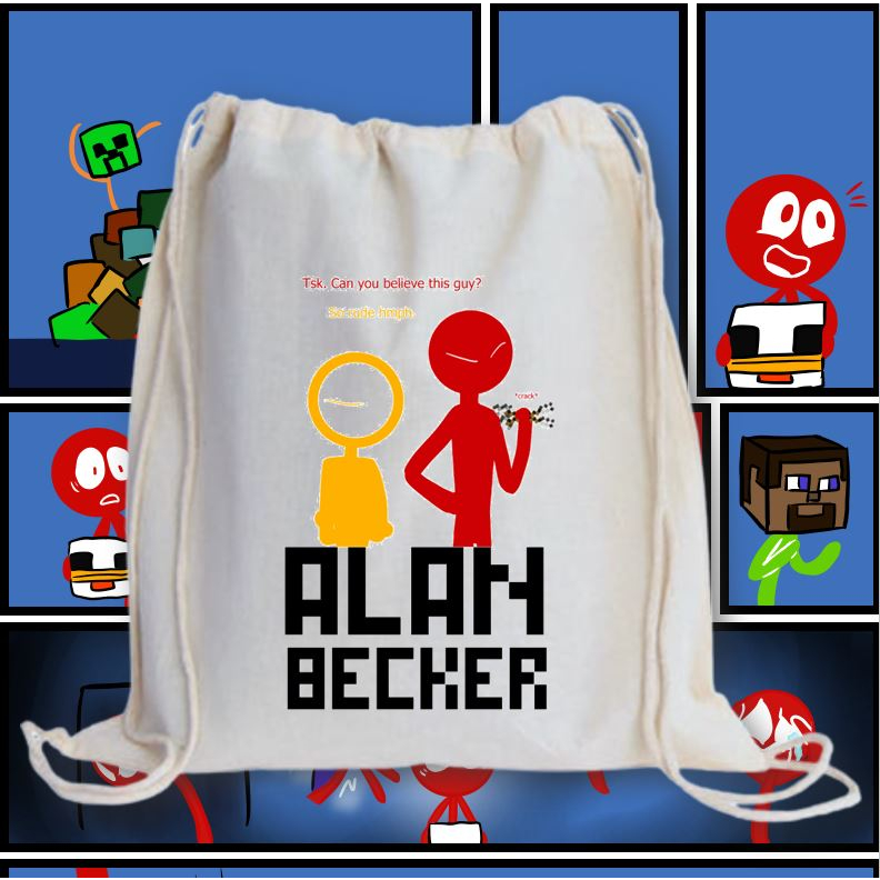 ALAN BECKER 2 DRAWSTRING BAG 2M/ GRAPHIC PRINTED CANVAS BAG / 13X15 INCHES PRINTED STRING BAG