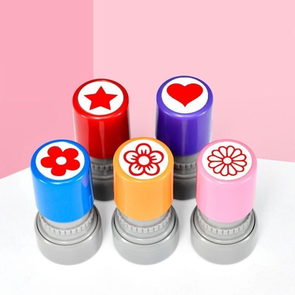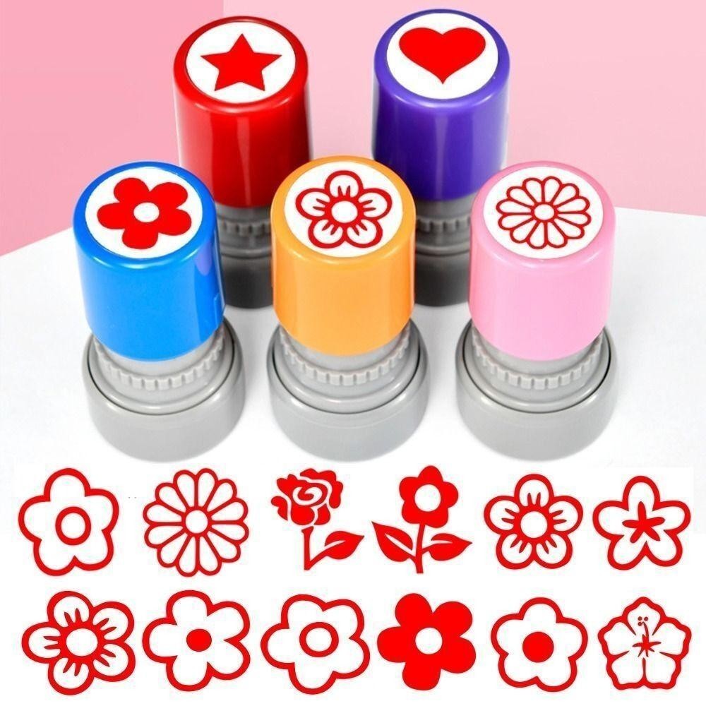 ALDAL DIY Drawing Toy, Plastic Handcraft Flower Stamp, Random Self Inking Cartoon Teacher Review Stamp