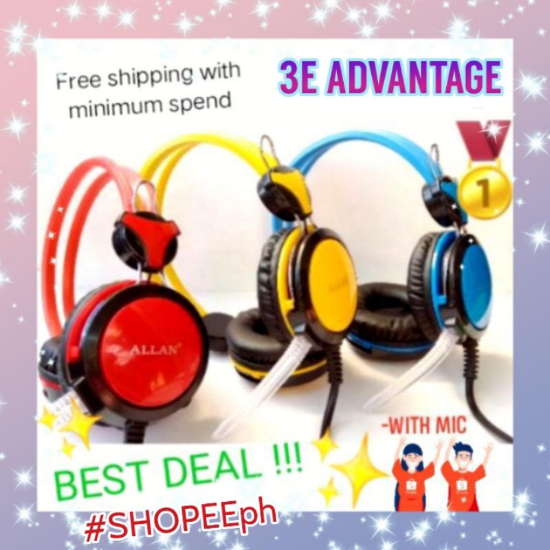 ALLAN HEADSET (w/ MICROPHONE, Adjustable,LEATHER EARPADS /Mousepad/Spider Headset /A4TechMouse Combo