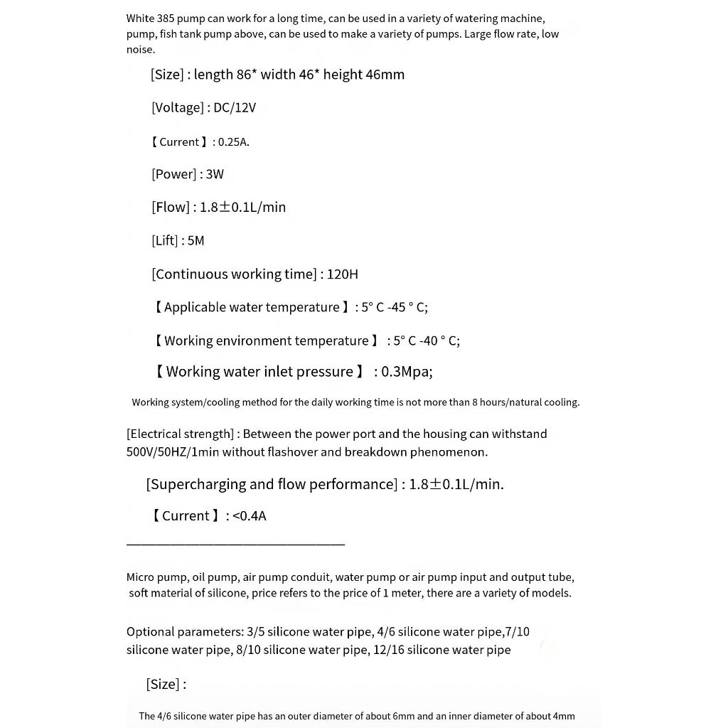 ALLAN Water Pump 385 12V Dc Water Pumping Motor Mini Water Pump Machine For Showers Water Dispensers