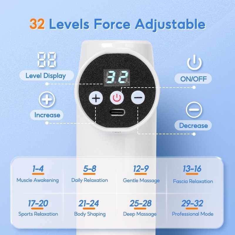 ALLTOU Massage Electric Gun With LED 12 Heads Gun Electric Fascial Gun for Muscle Relaxation Massage