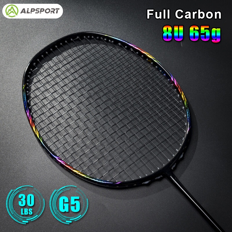 ALP BBQ2.0 Badminton Racket White Super Light 8U Titanium Alloy Shock Absorption 100% Full Carbon Fiber 24-30Lbs Strung Badminton Racket Reket Battledore Raket Badminton For train
