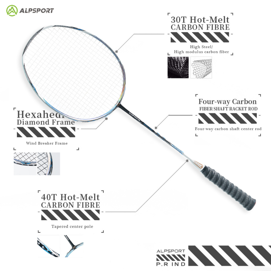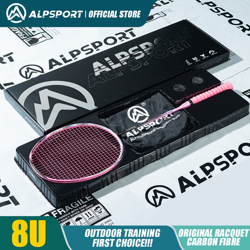 ALP BBQ3.0 T800 8U Light Offensive Pink/White/Blue/Black Badminton Racket Max 32LBS COD 100% Original Carbon for Student Racket Beginner Raket ALPSPORT BBQ3.0 Reket Racquet