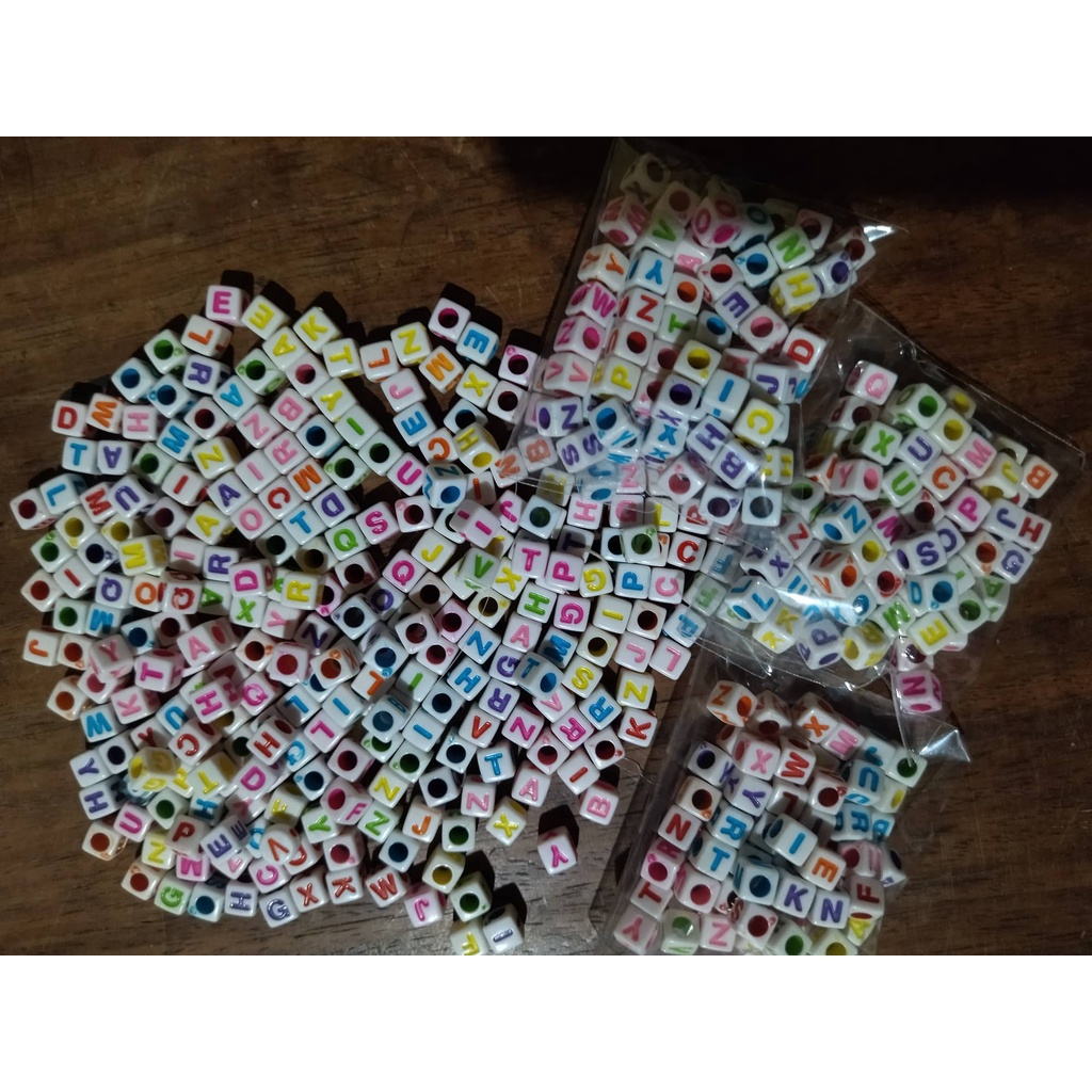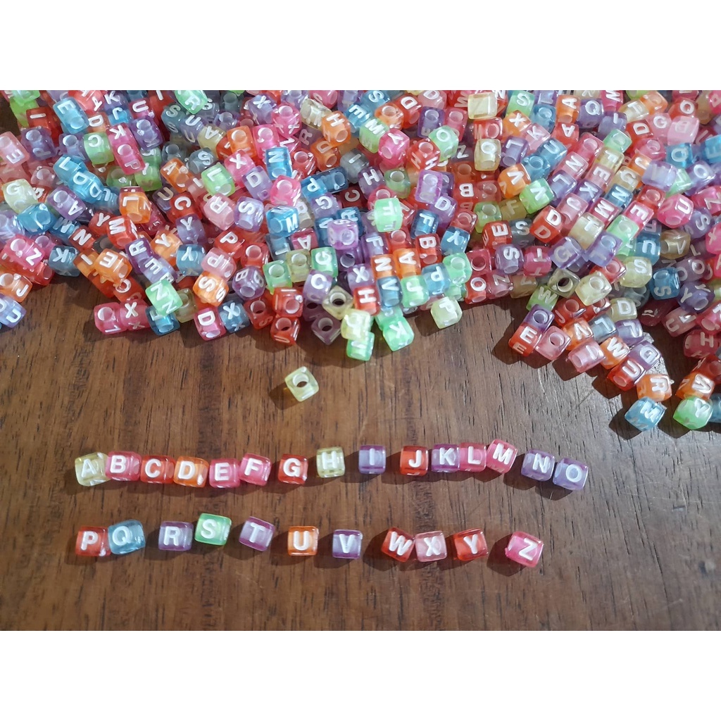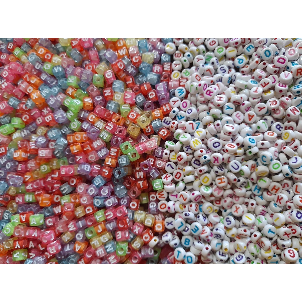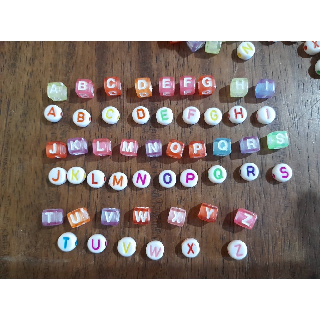 ALPHABET / LETTER BEADS : CUBE AND CIRCLE DESIGN WITH COMPLETE SET FROM A TO Z