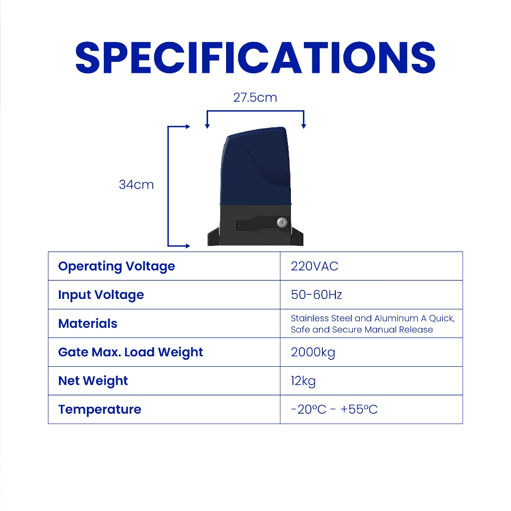 ALTECH 2000KG Electric Automatic Sliding Gate Opener Remote Control Operated SL-2202A (Residential)