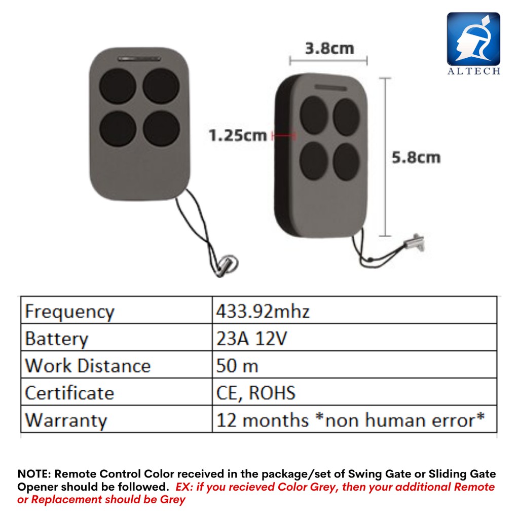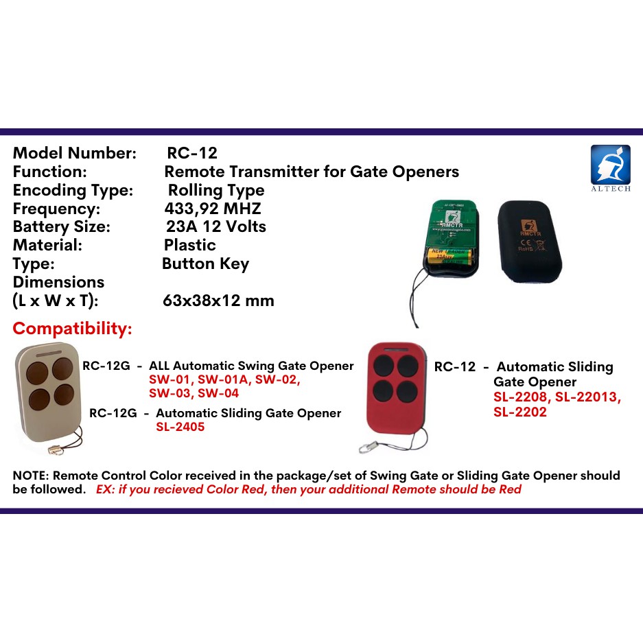 ALTECH Remote Control for Automatic Gate Openers ALTECH RC12G